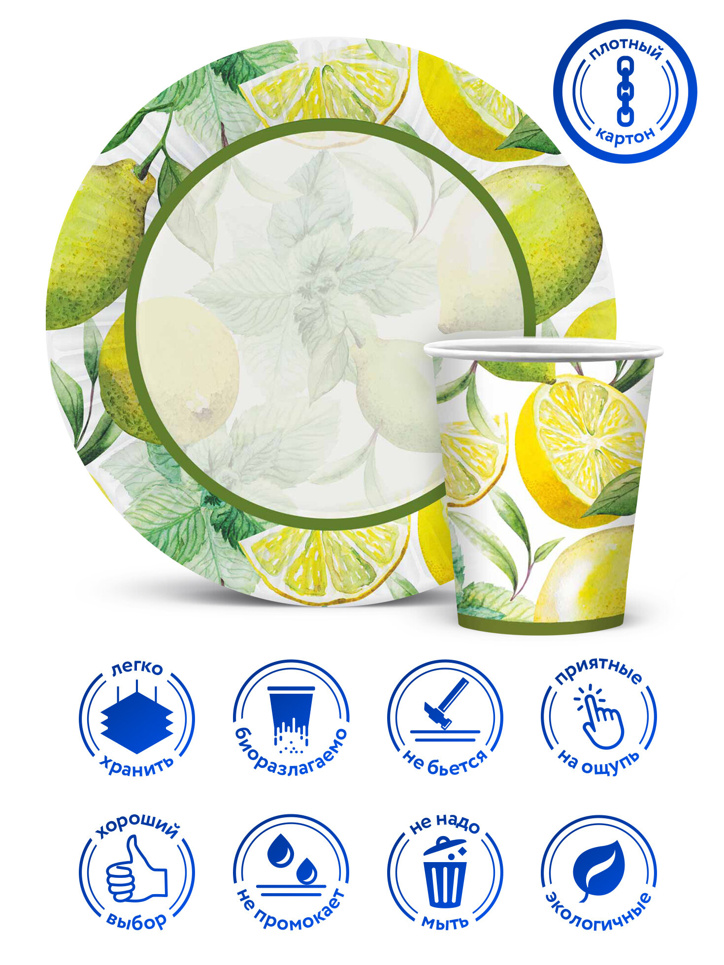 Набор для праздника Лимоны (тарелка бол, стакан, по 12 шт.) информация: