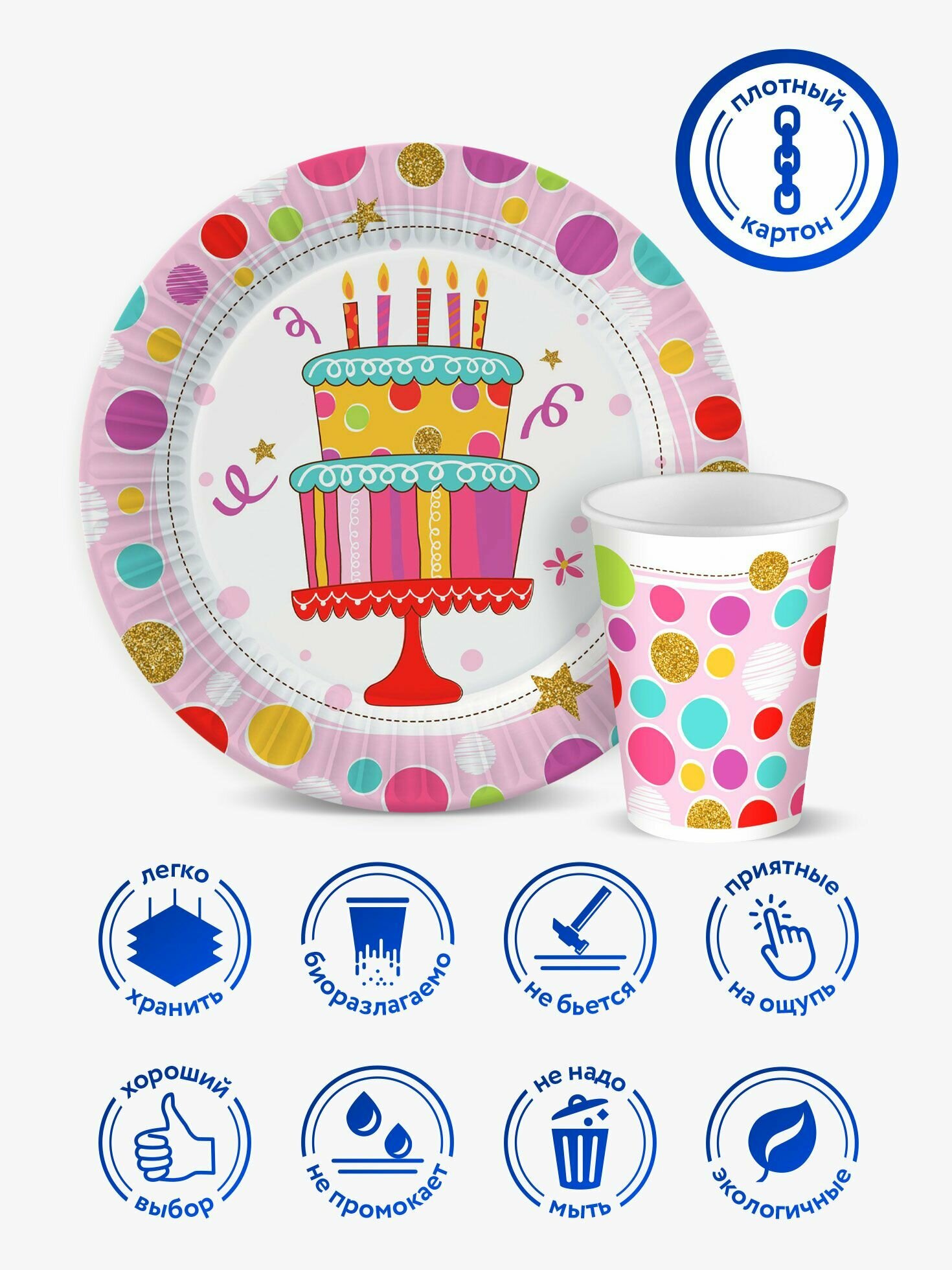 Отзывы на Набор одноразовой бумажной посуды для праздника ND Play / Тортик (стакан, тарелка 18 см, по 18 шт.)