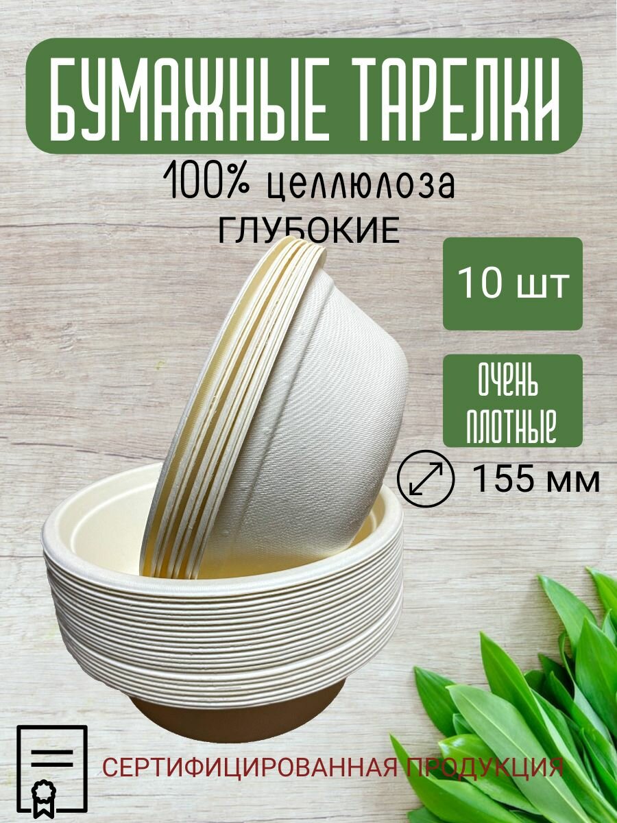 Отзывы на Одноразовая посуда / Тарелка глубокая, миска для супа одноразовая биоразлагаемая бумажная, объем 500 мл, 10 шт. в упаковке