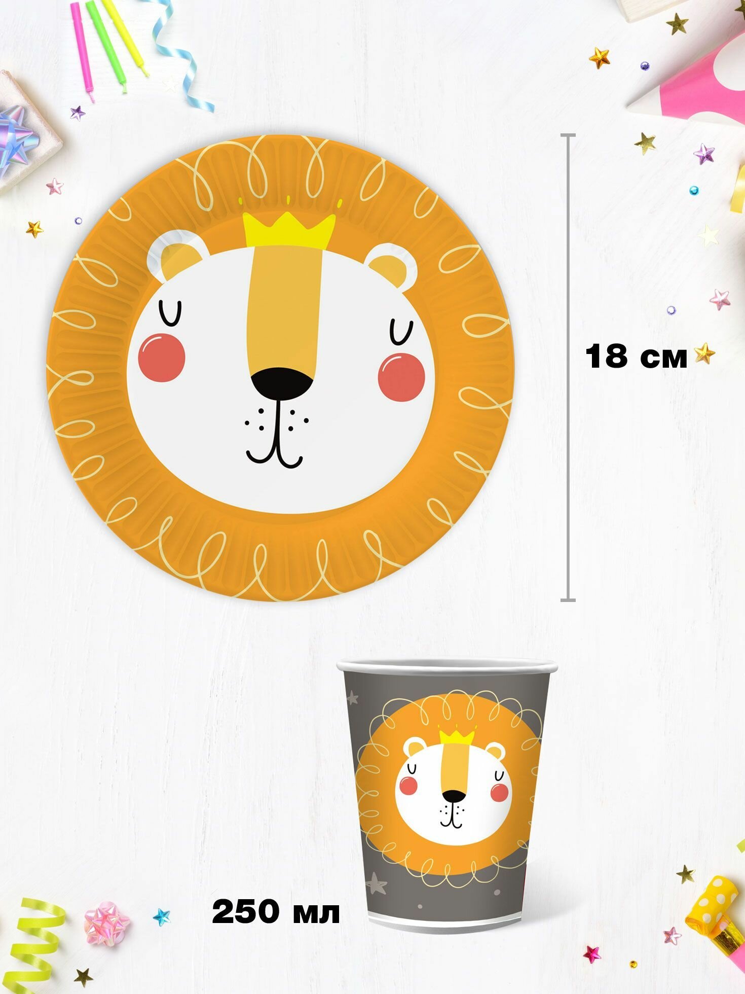 Набор одноразовой бумажной посуды для праздника ND Play / Хэппи Зоо (стакан, тарелка 18 см, по 12 шт.) информация: