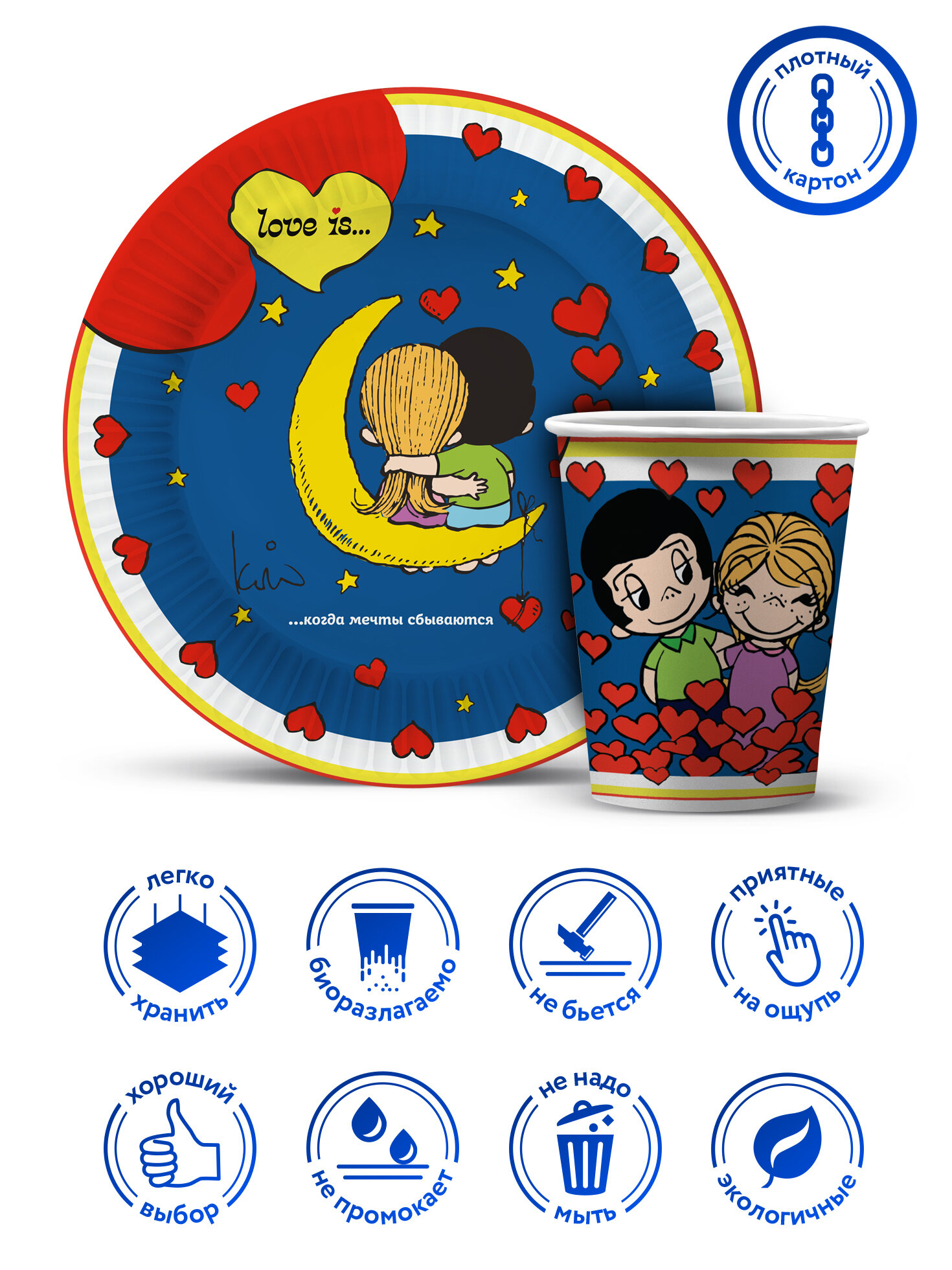 10 цен на Набор для праздника Love is… (тарелка мал, стакан, по 12 шт.)