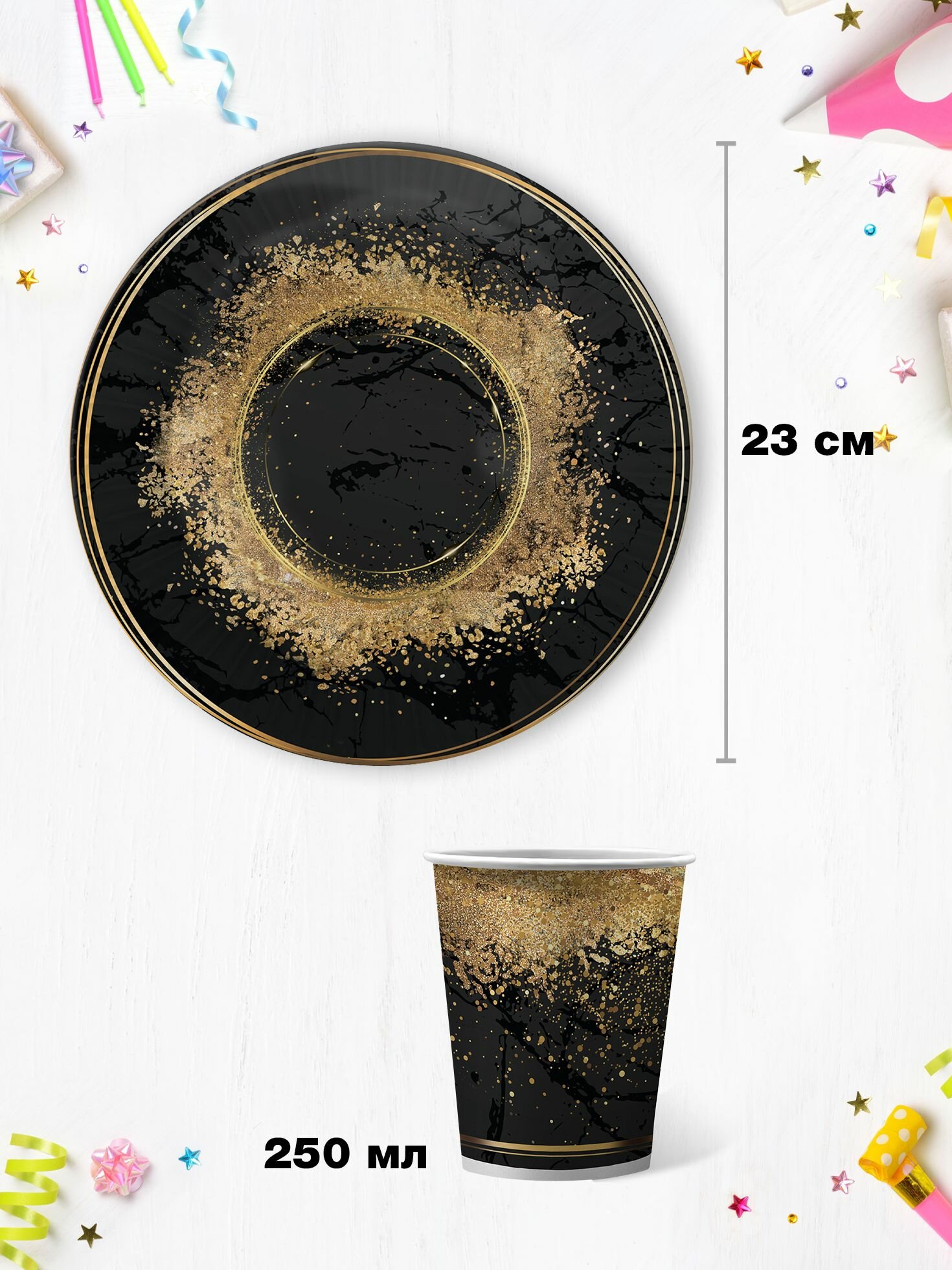 Отзывы на Набор бумажной одноразовой посуды для праздника ND Play / Золотой песок (стакан, тарелка 23 см, по 18 шт.)