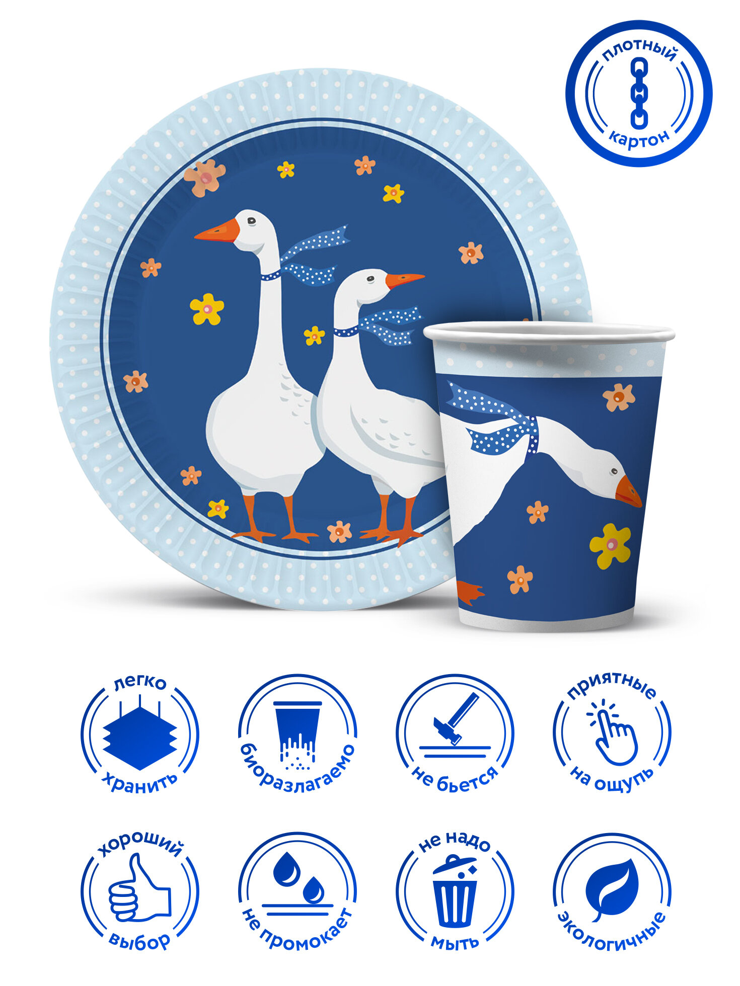 Набор для праздника Гуси-2 (тарелка бол, стакан, по 18 шт.) информация:
