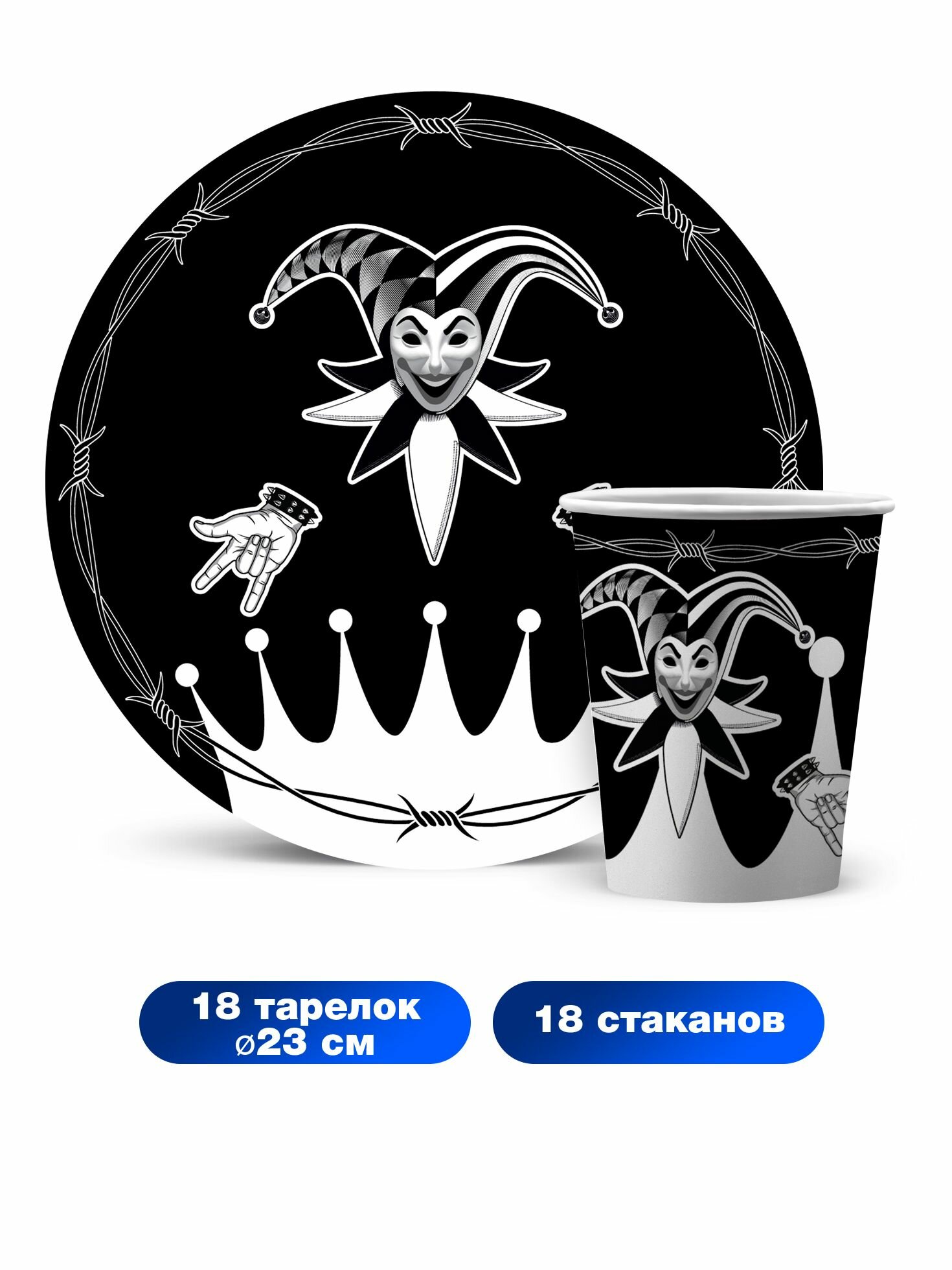 Набор одноразовой бумажной посуды для праздника ND Play / Шут (тарелка 23 см, стакан, по 18 шт.) информация: