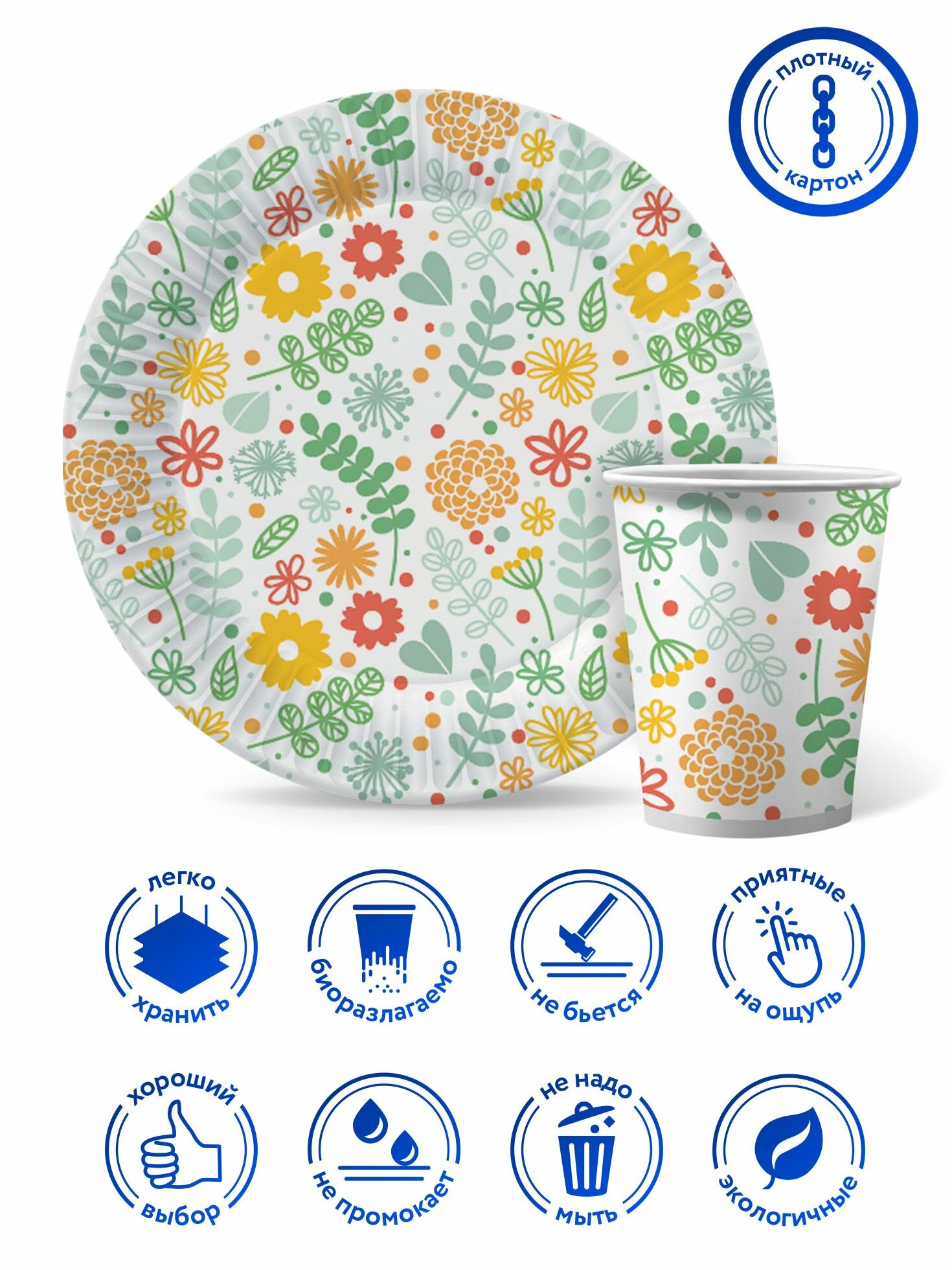 Отзывы на Набор одноразовой бумажной посуды для праздника ND Play / Желтые цветы (тарелка 23 см, стакан, по 12 шт.)