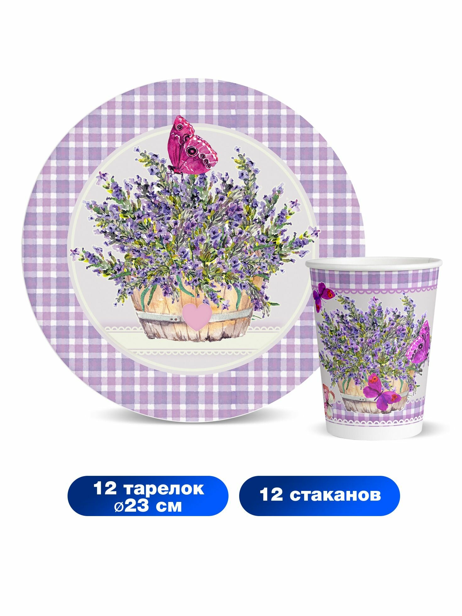 Набор одноразовой бумажной посуды для праздника ND Play / Лаванда - 2 (тарелка 23 см, стакан, по 12 шт.) информация: