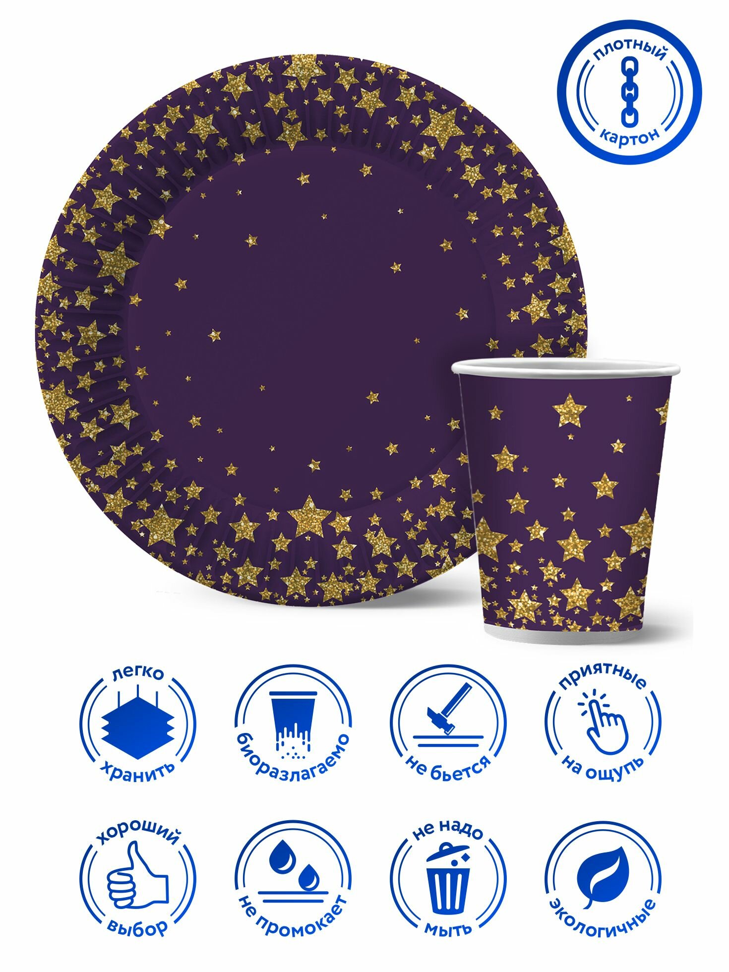 10 цен на Набор для праздника Звезды на черном-2 (тарелка 23 см, стакан по 12 шт.)