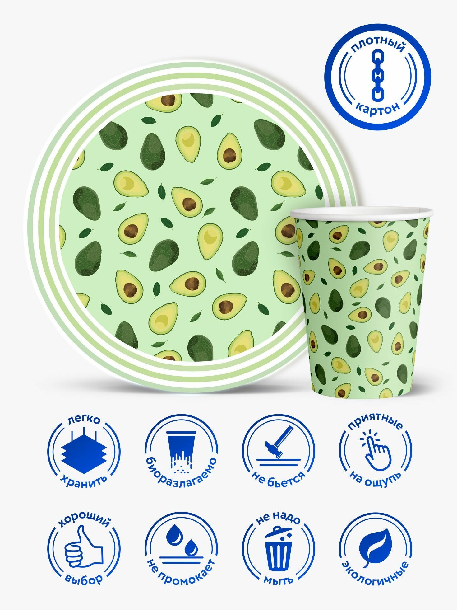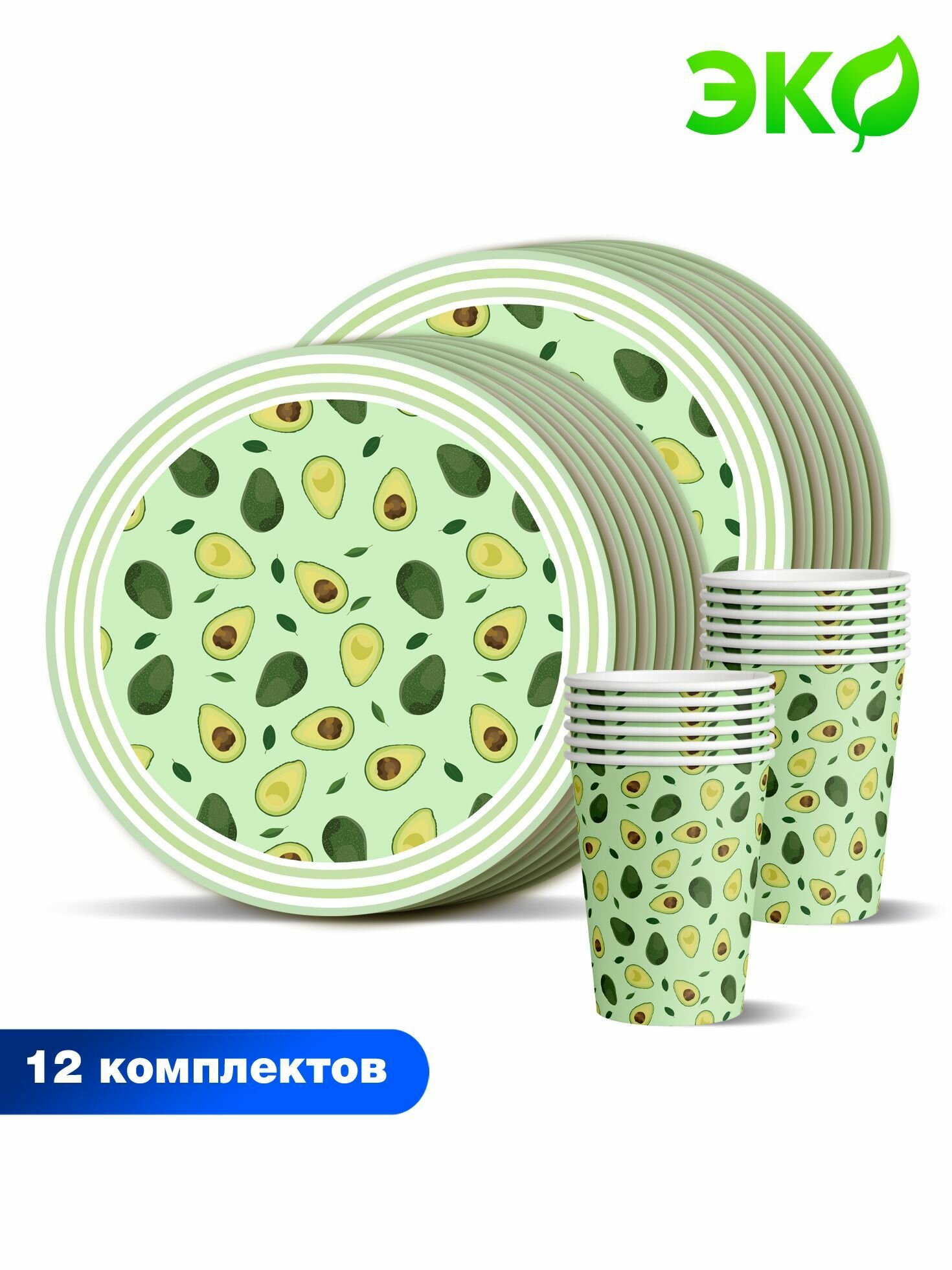 Набор одноразовой бумажной посуды для праздника ND Play / Авокадо-2 (тарелка 23 см, стакан по 12 шт.) информация:
