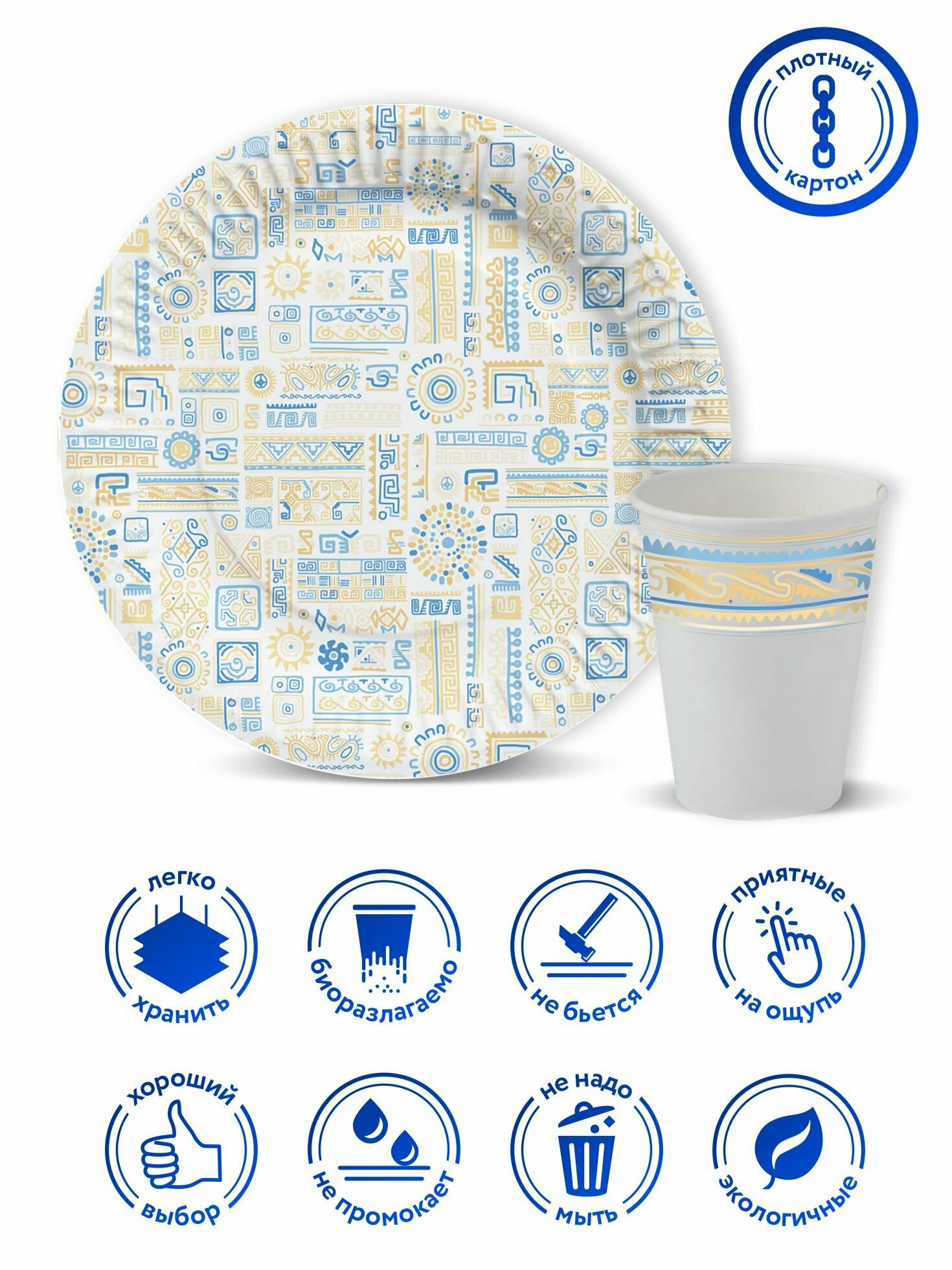 Набор одноразовой бумажной посуды для праздника ND Play / Мозаика (тарелка 23 см, стакан, по 12 шт.) информация: