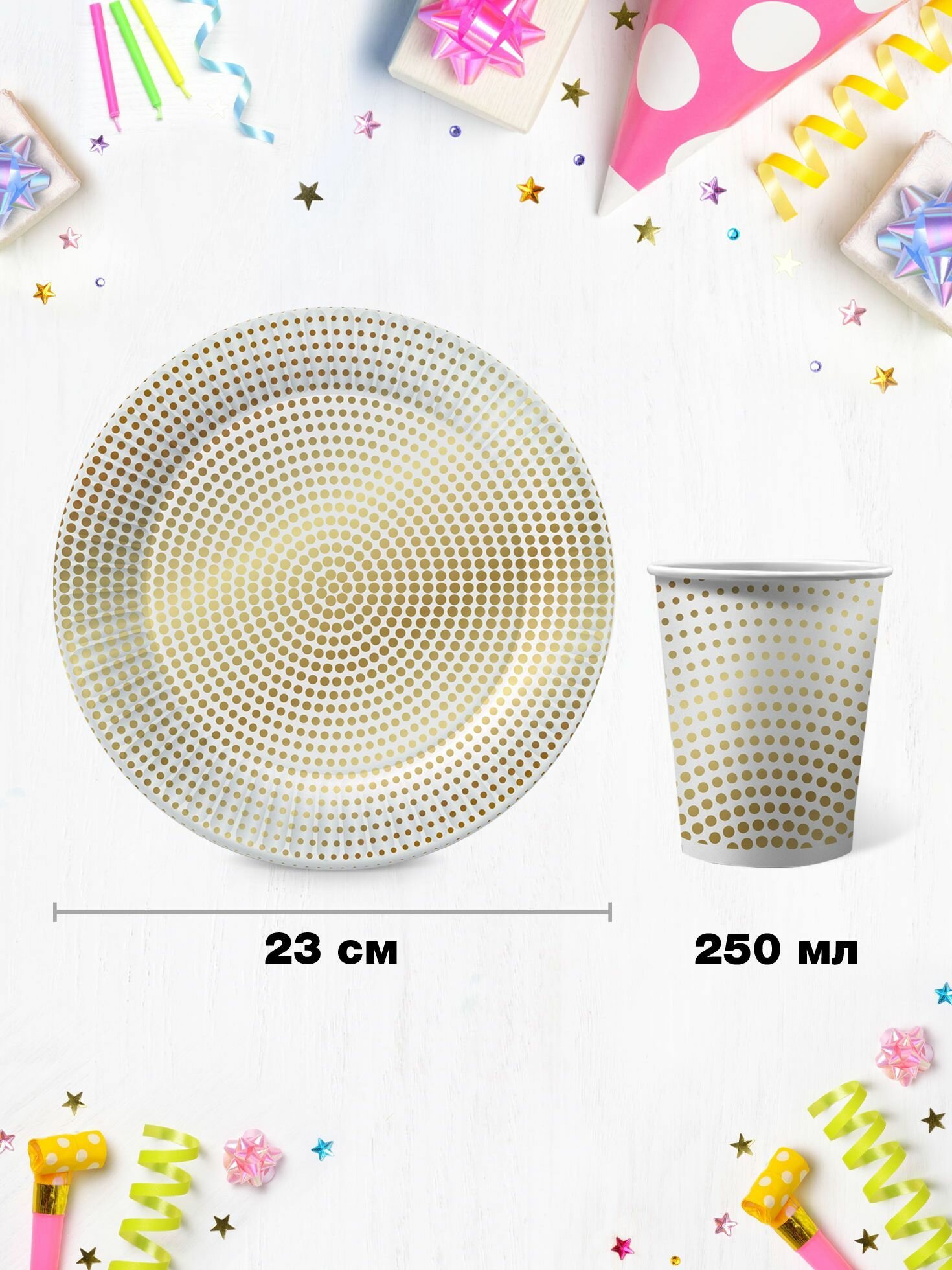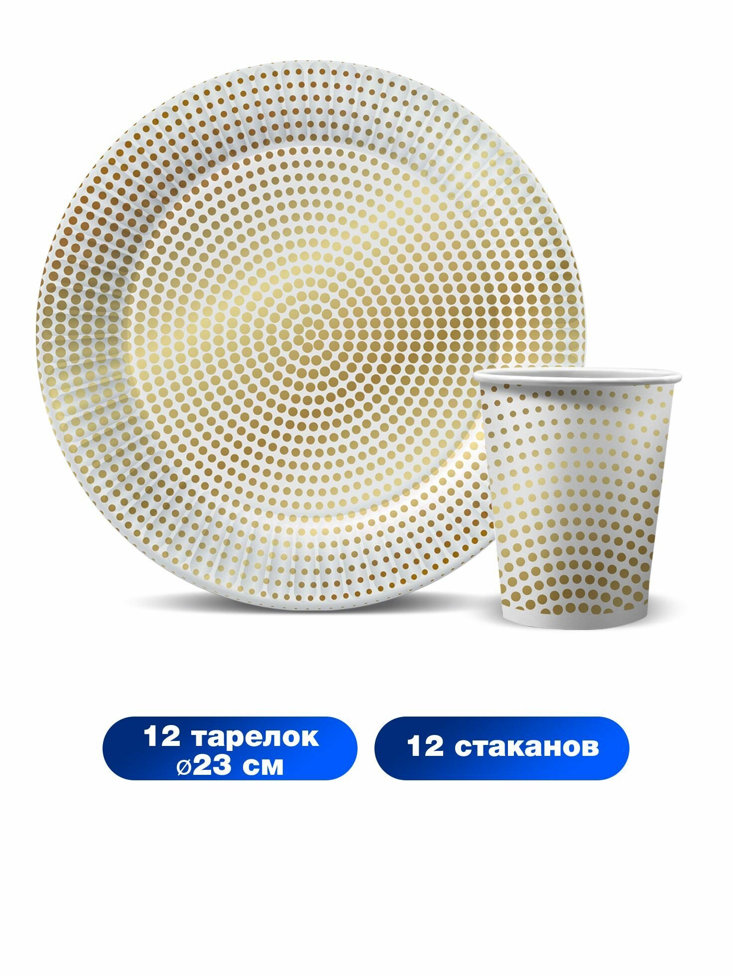 Одноразовая посуда для праздника ND Play "Золотой горох" (тарелка 23 см, стакан 250 мл, по 12 шт.) информация: