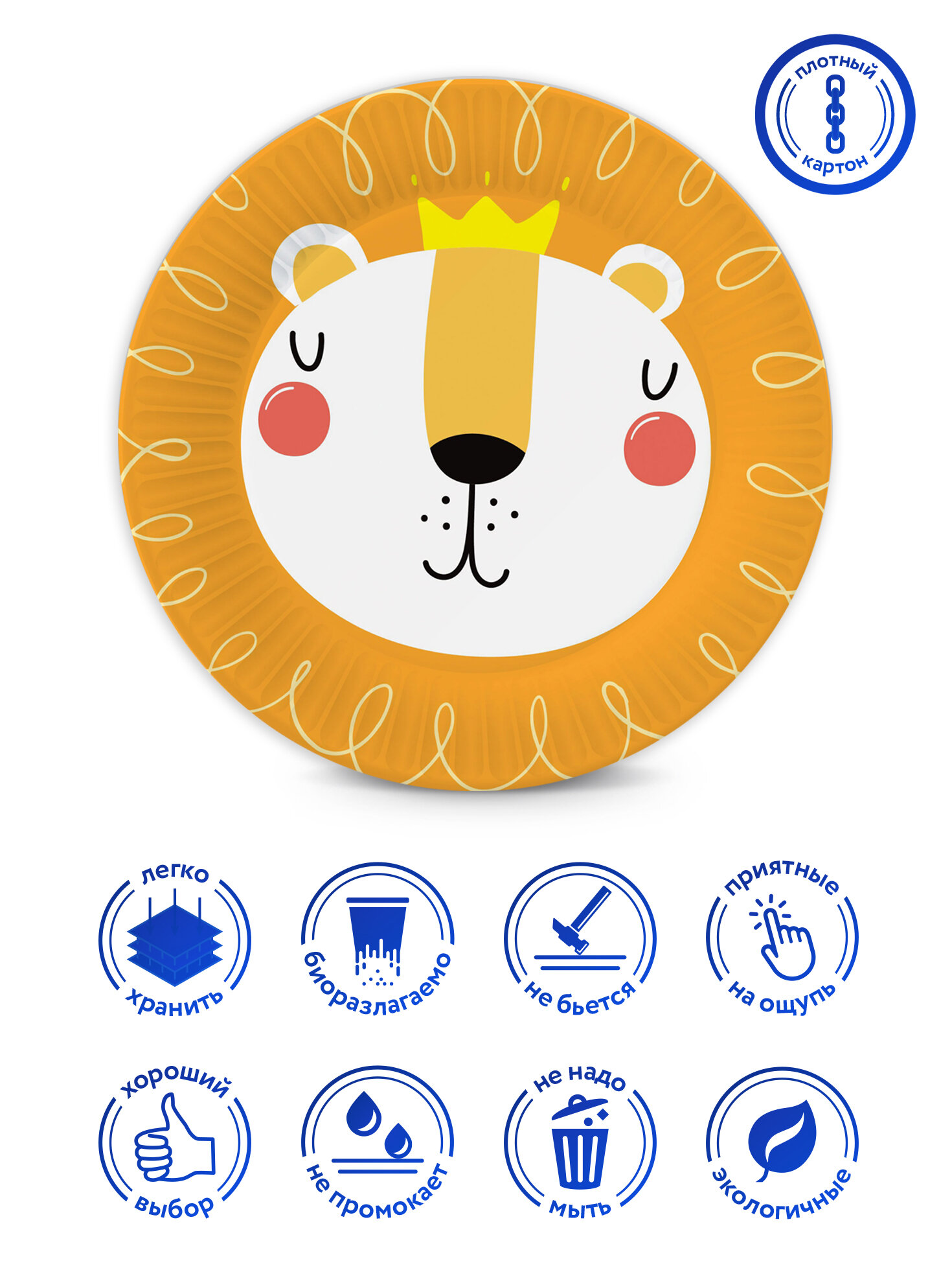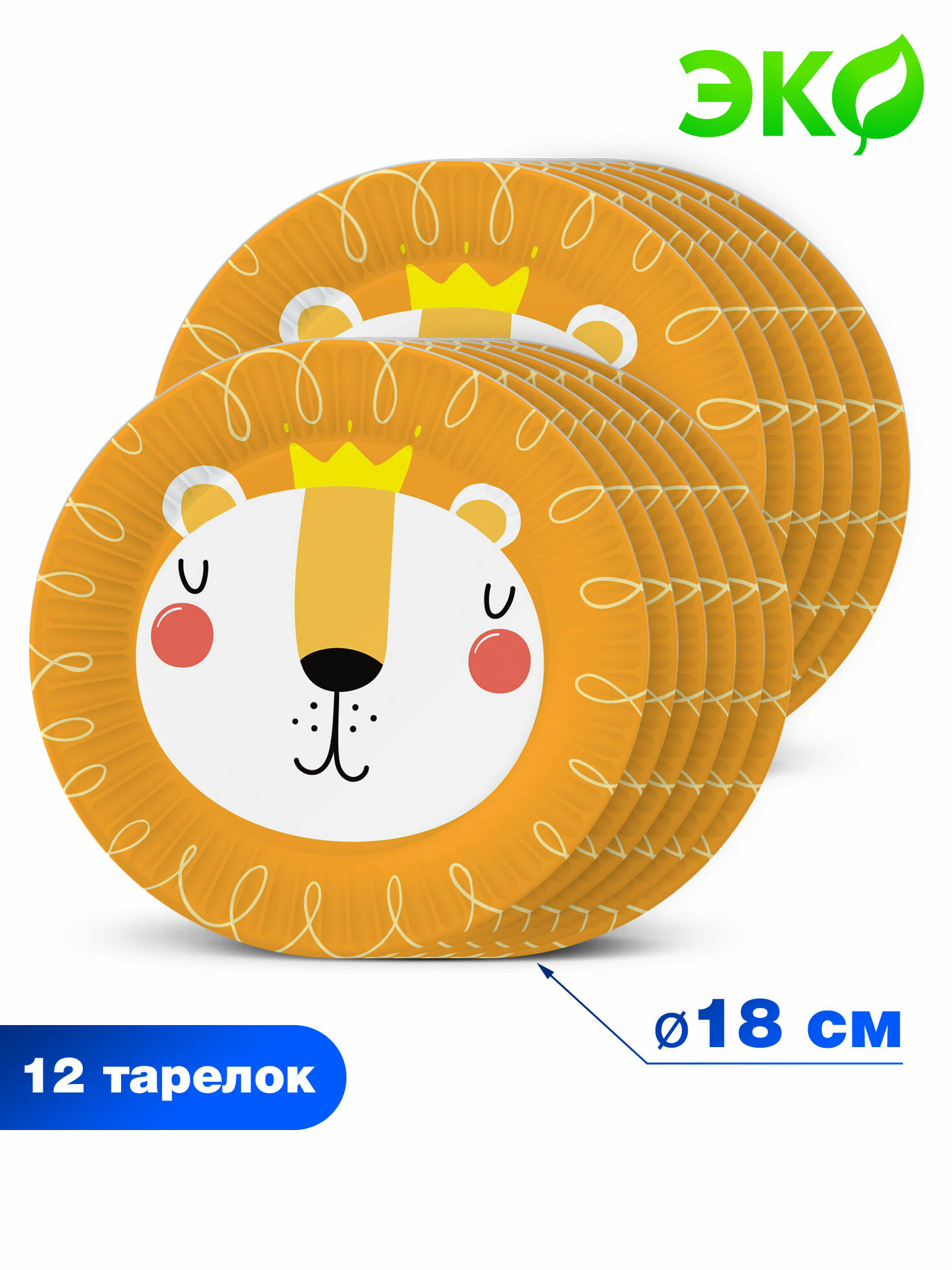 Набор одноразовых бумажных тарелок Хэппи Зоо (Лев), в т/у пленке, 12шт d=180 мм ND Play информация: