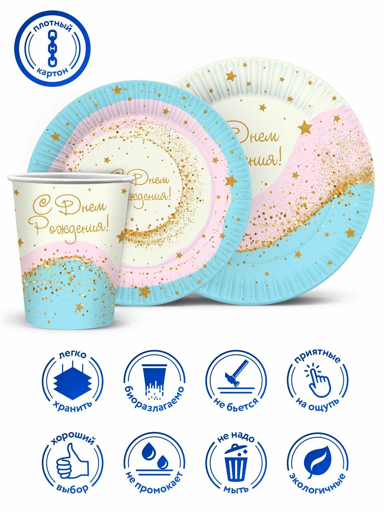 Отзывы на Набор одноразовой бумажной посуды для праздника ND Play / Воздушный зефир (тарелка 18 см, тарелка 23 см, стакан, по 6 шт.)
