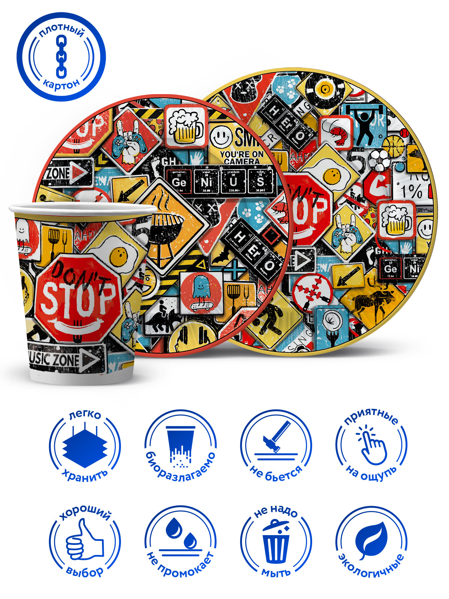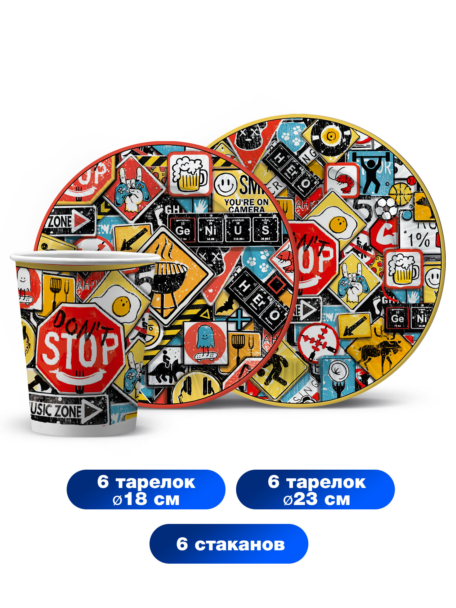 Набор одноразовой бумажной посуды для праздника ND Play / Знаки яркие (тарелка бол, тарелка мал, стакан, по 6 шт.) информация: