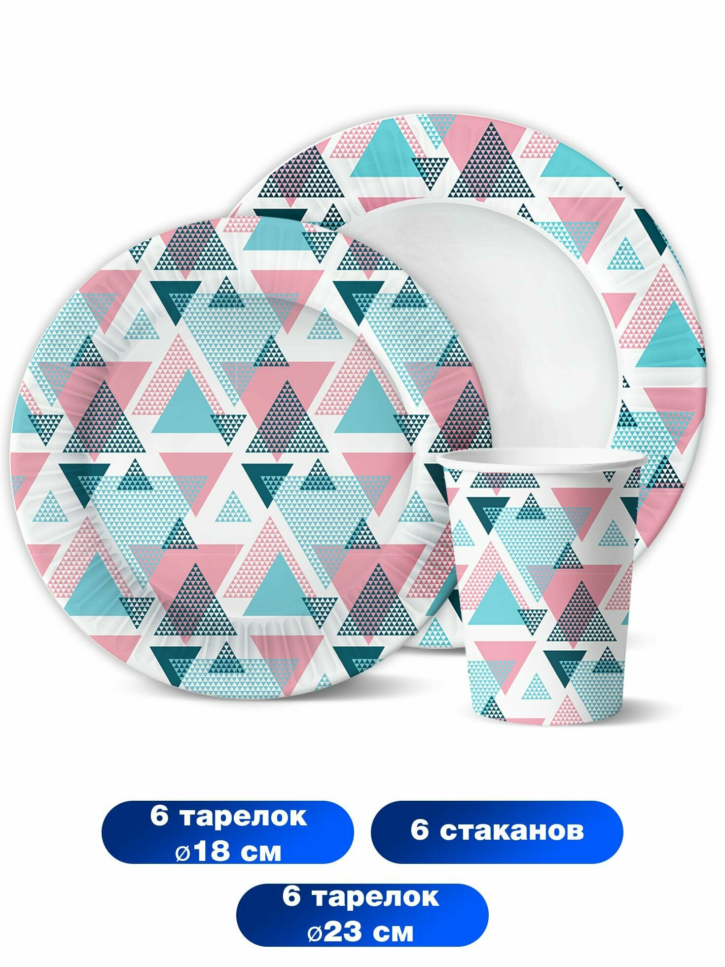 Набор одноразовой бумажной посуды для праздника ND Play / Геометрия (тарелка 18 см, тарелка 23 см, стакан 250 мл, по 6 шт.), 298664 информация: