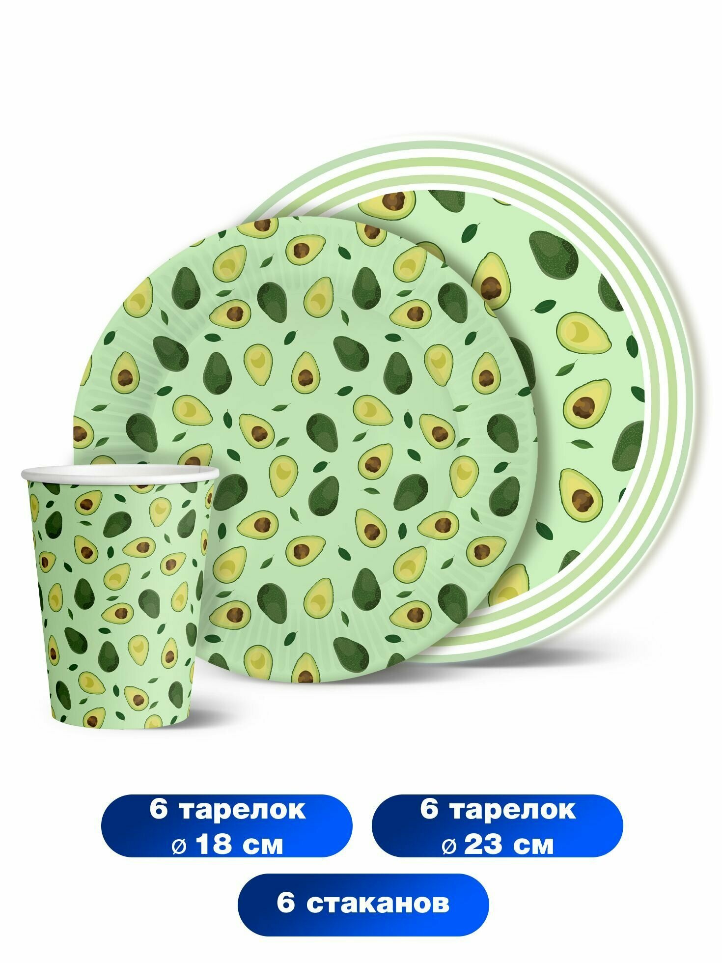 Набор одноразовой бумажной посуды для праздника ND Play / Авокадо. Дизайн 2 (тарелка 18 см, тарелка 23 см, стакан 250 мл, по 6 шт.), 298790 информация: