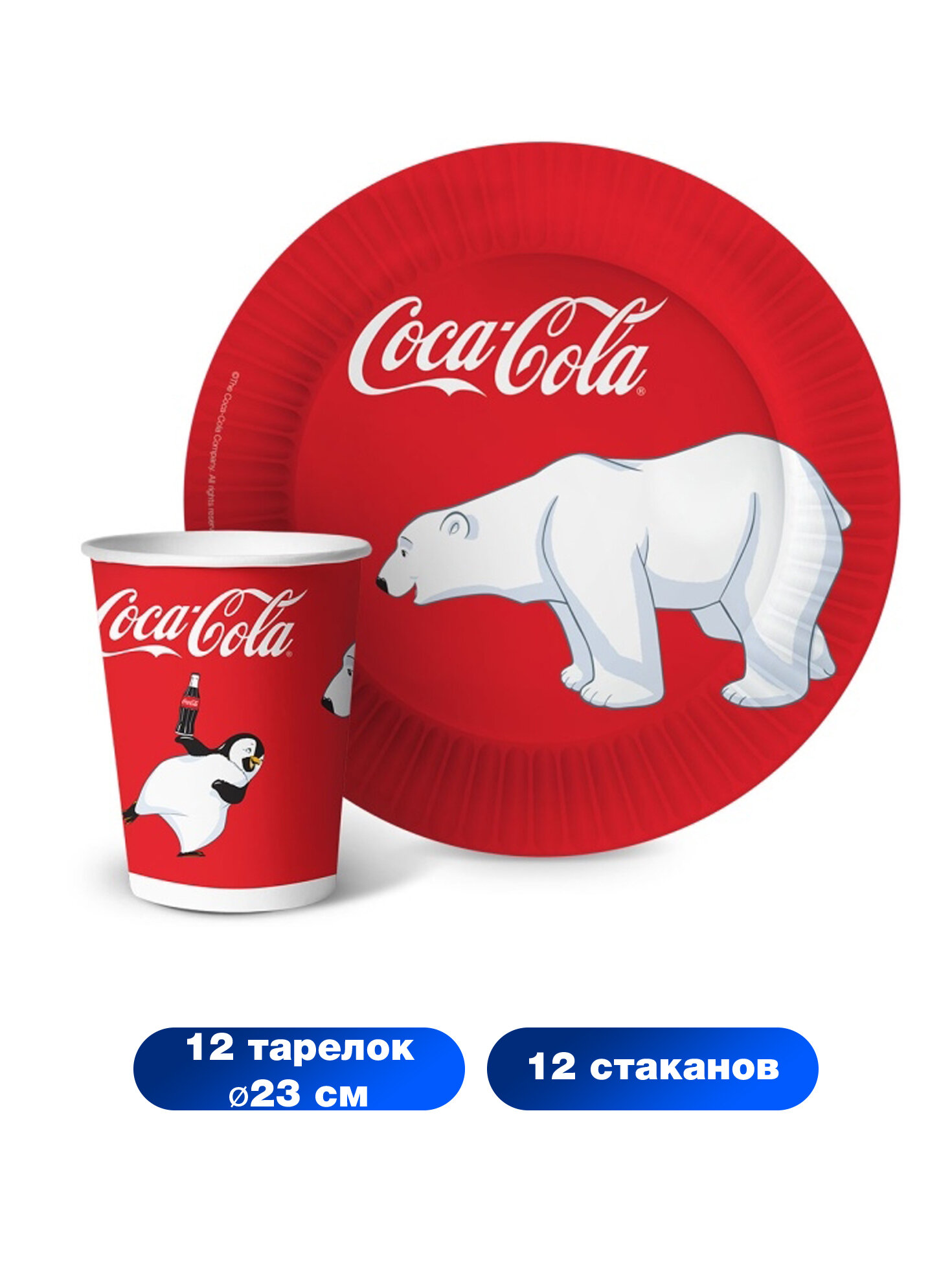 Набор бумажной одноразовой посуды для праздника Coca-Cola (стакан, тарелка по 12 шт.) ND Play информация: