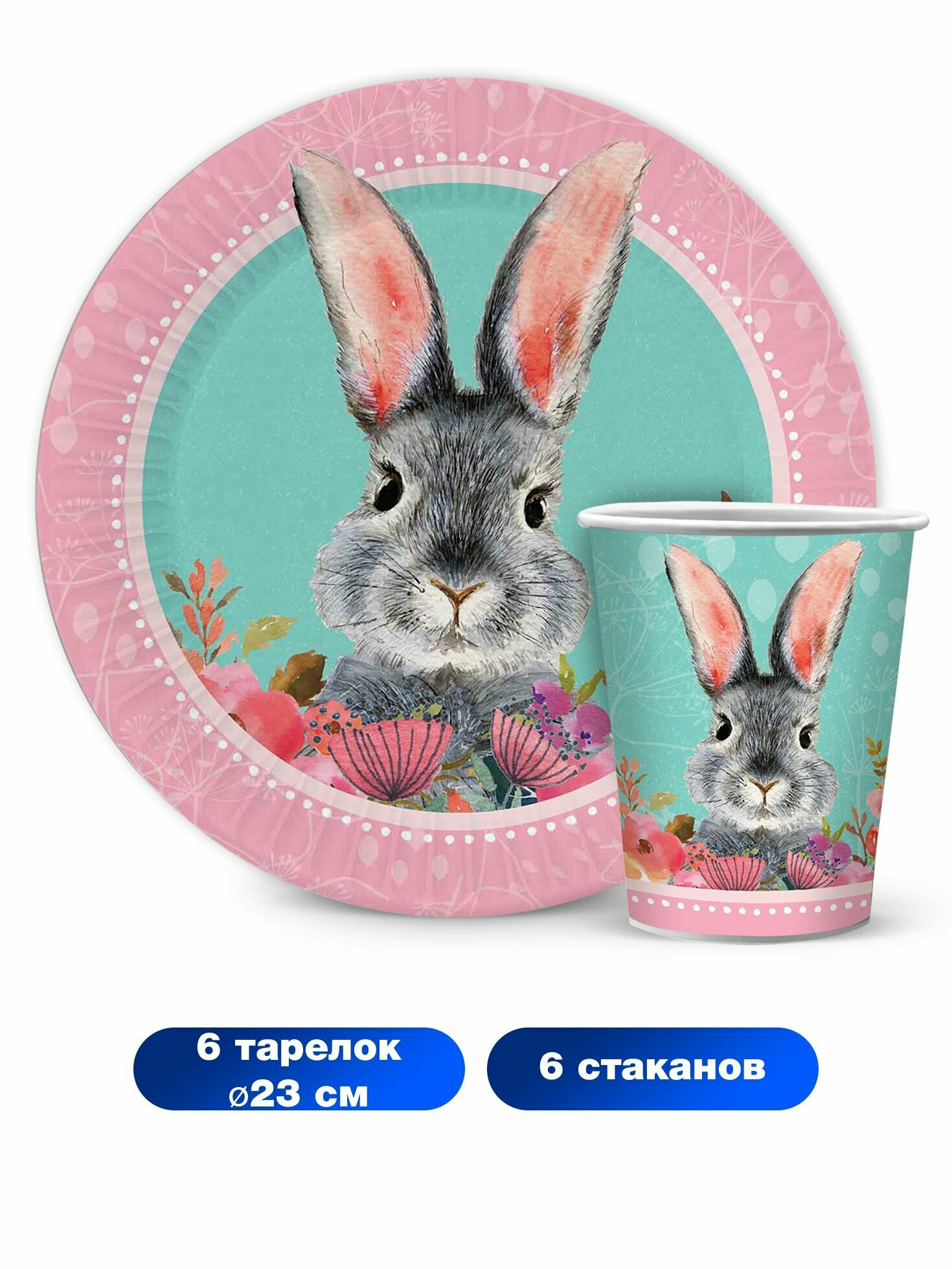 Набор одноразовой бумажной посуды для праздника ND Play / Кролик / Символ года 2023 (стакан 250 мл, тарелка 23 см, по 6 шт.), 306877 информация: