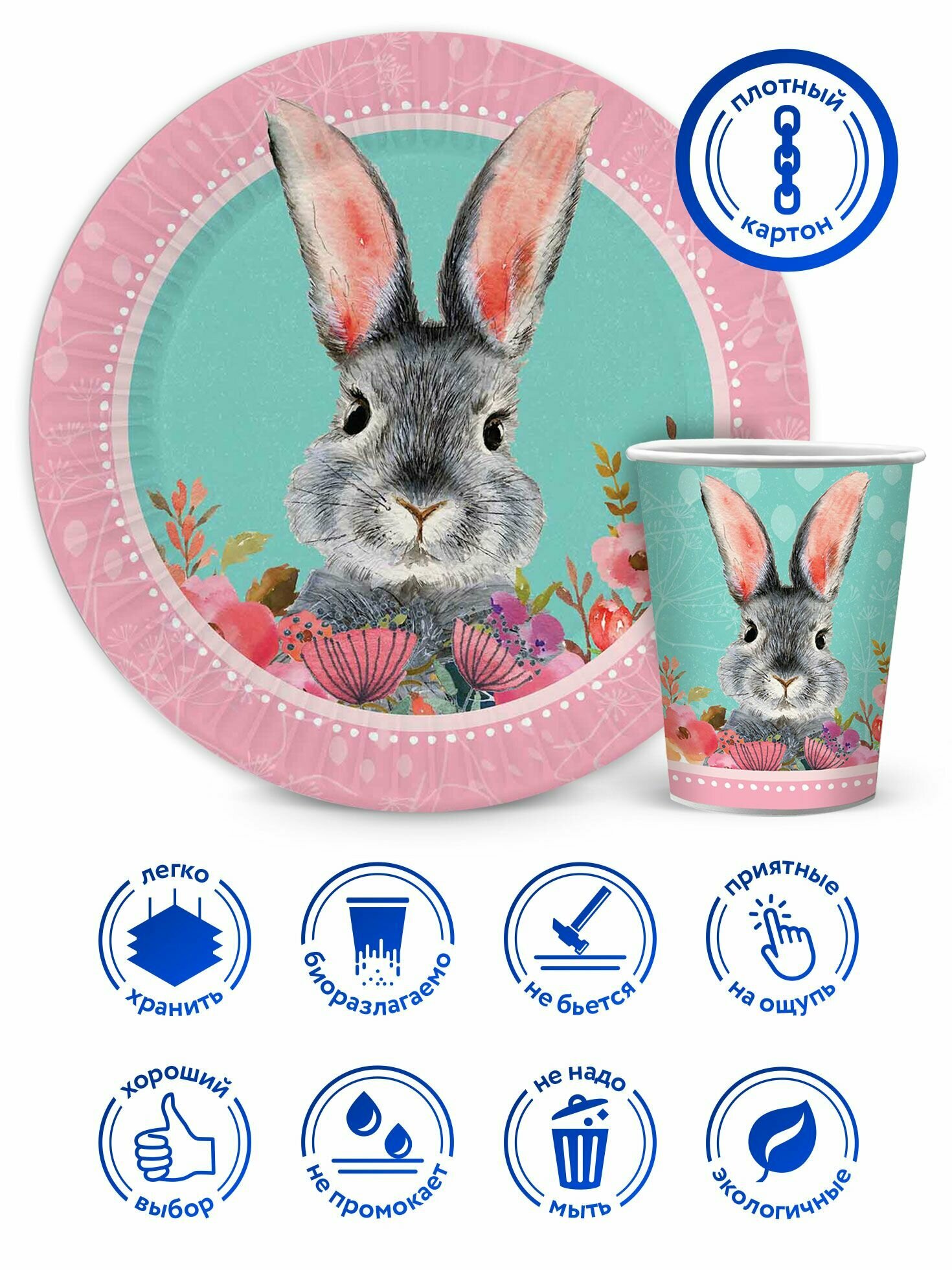 Отзывы на Набор одноразовой бумажной посуды для праздника ND Play / Кролик / Символ года 2023 (стакан 250 мл, тарелка 23 см, по 6 шт.), 306877