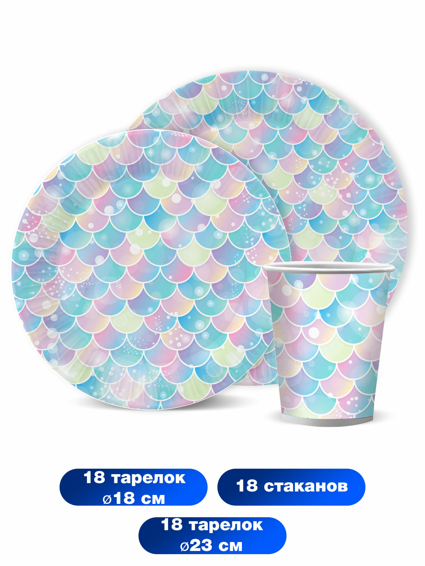 Набор бумажной одноразовой посуды для праздника Русалка. Дизайн 3 (тарелка мал. и бол, стакан, по 18 шт.) ND Play информация: