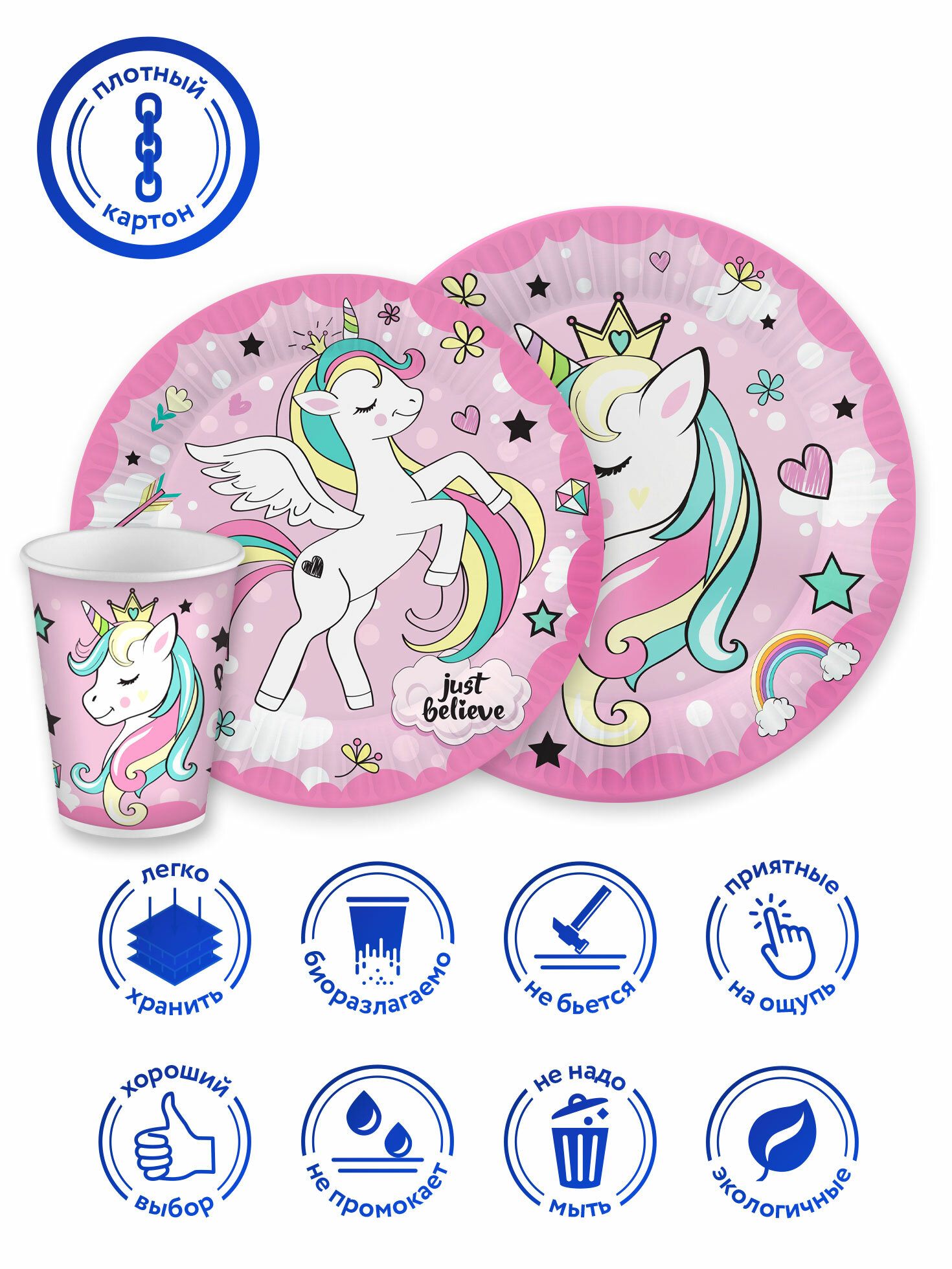 Отзывы на Набор одноразовой бумажной посуды для праздника ND Play / Единорог (тарелка мал, тарелка бол, стакан по 18шт.)