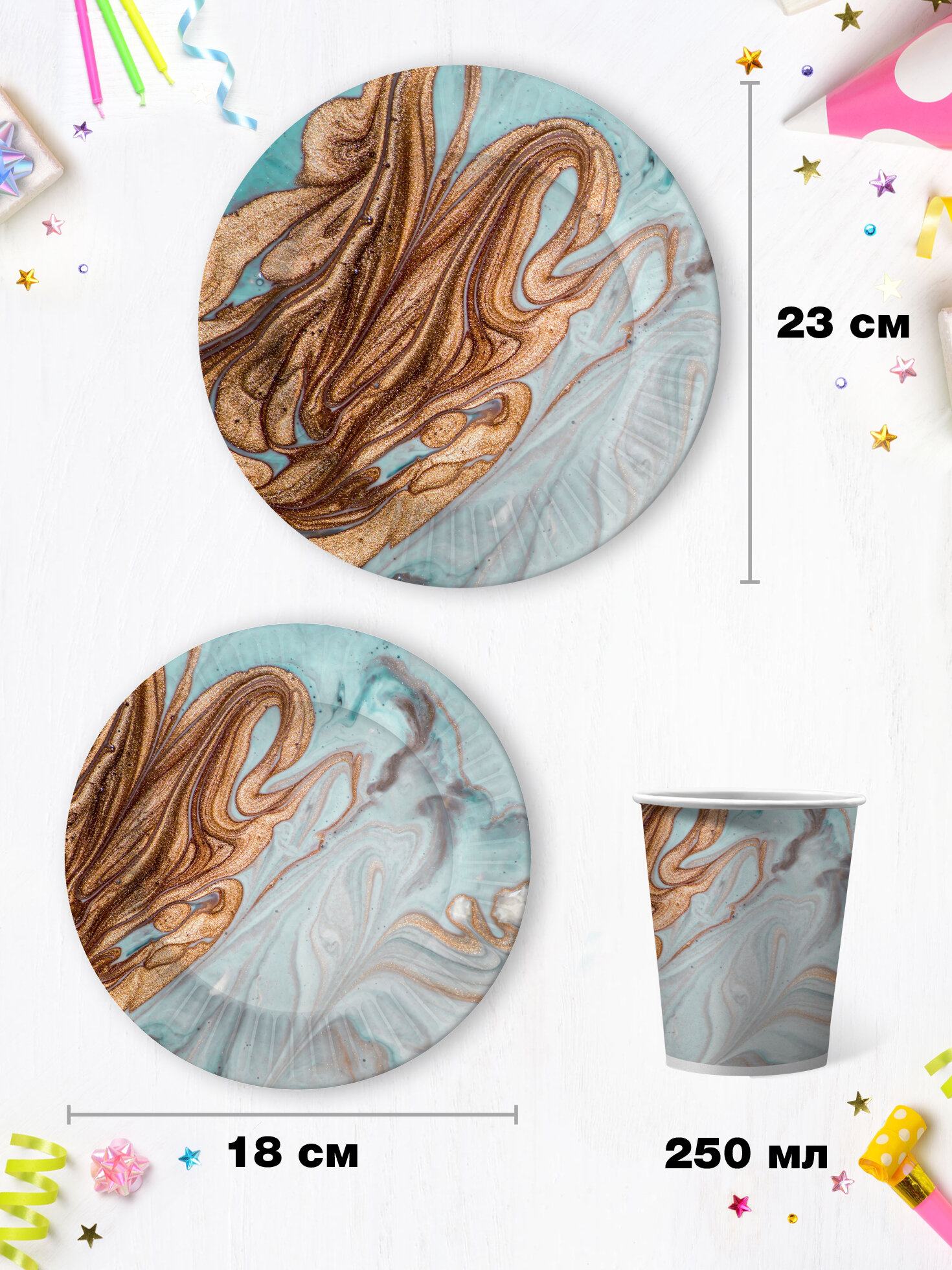 Набор бумажной одноразовой посуды для праздника ND Play / Смола синяя (тарелка 23 см, стакан, по 12 шт.)