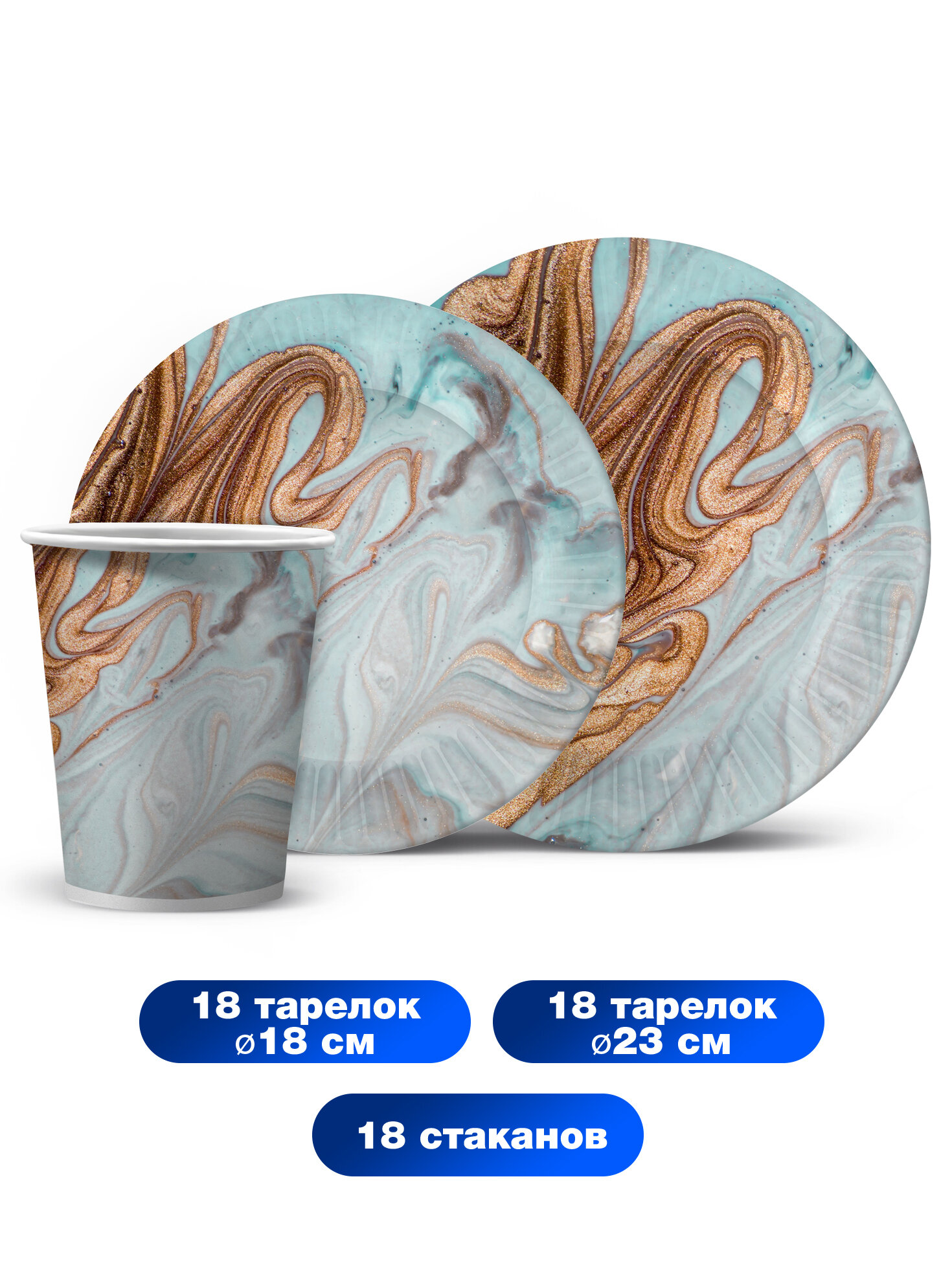 Набор для праздника Царская-калейдоскоп голубая (тарелка бол, тарелка мал, стакан, по 18 шт.) 959 ₽