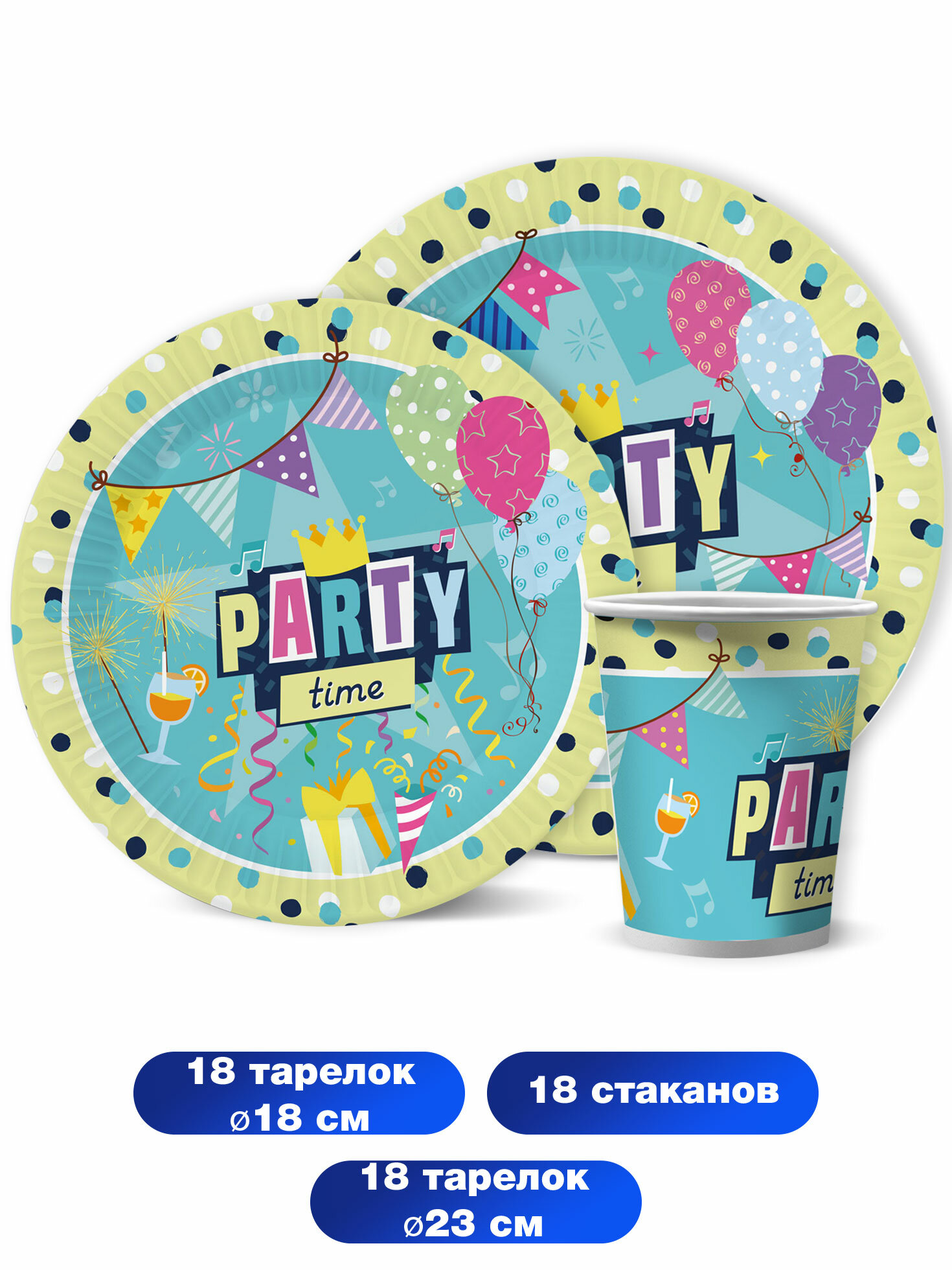 10 цен на Набор бумажной одноразовой посуды для праздника Вечеринка (тарелка мал, тарелка бол, стакан, по 18 шт.) ND Play