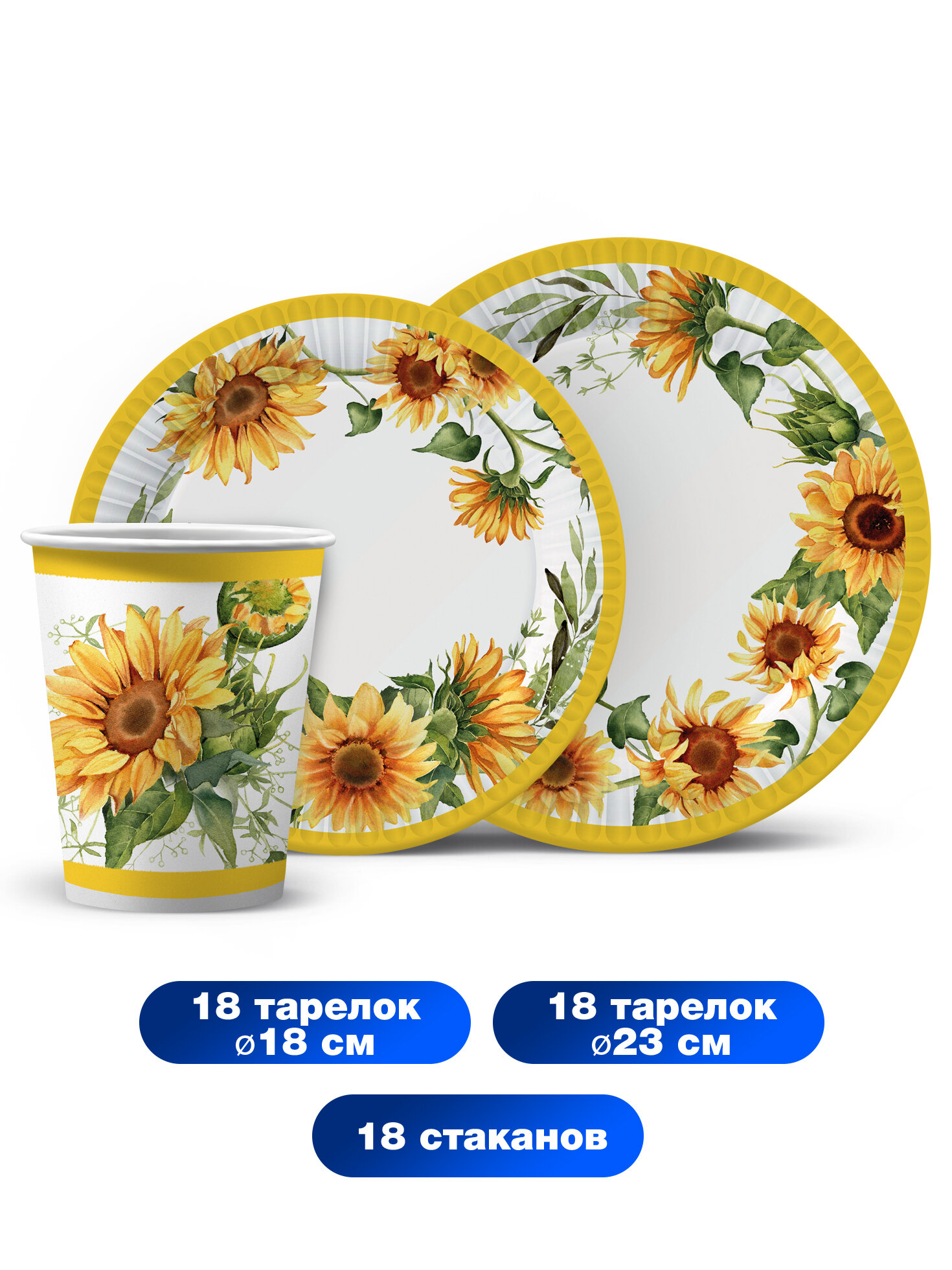 10 цен на Набор для праздника Подсолнухи (тарелка бол, тарелка мал, стакан, по 18 шт.)