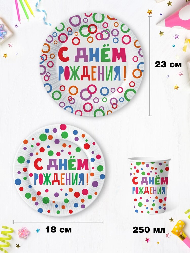 10 цен на Набор для праздника С Днем Рождения! (тарелка бол, тарелка мал, стакан, по 18 шт.)
