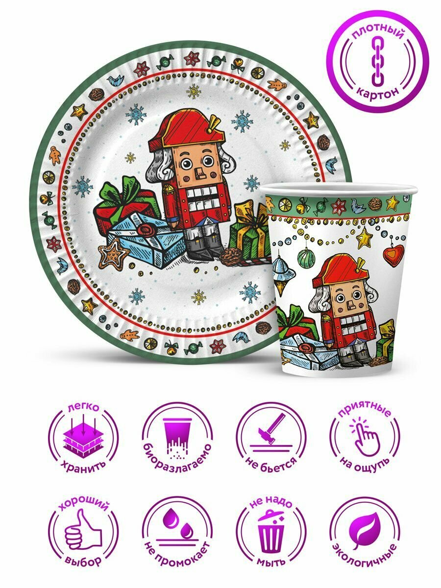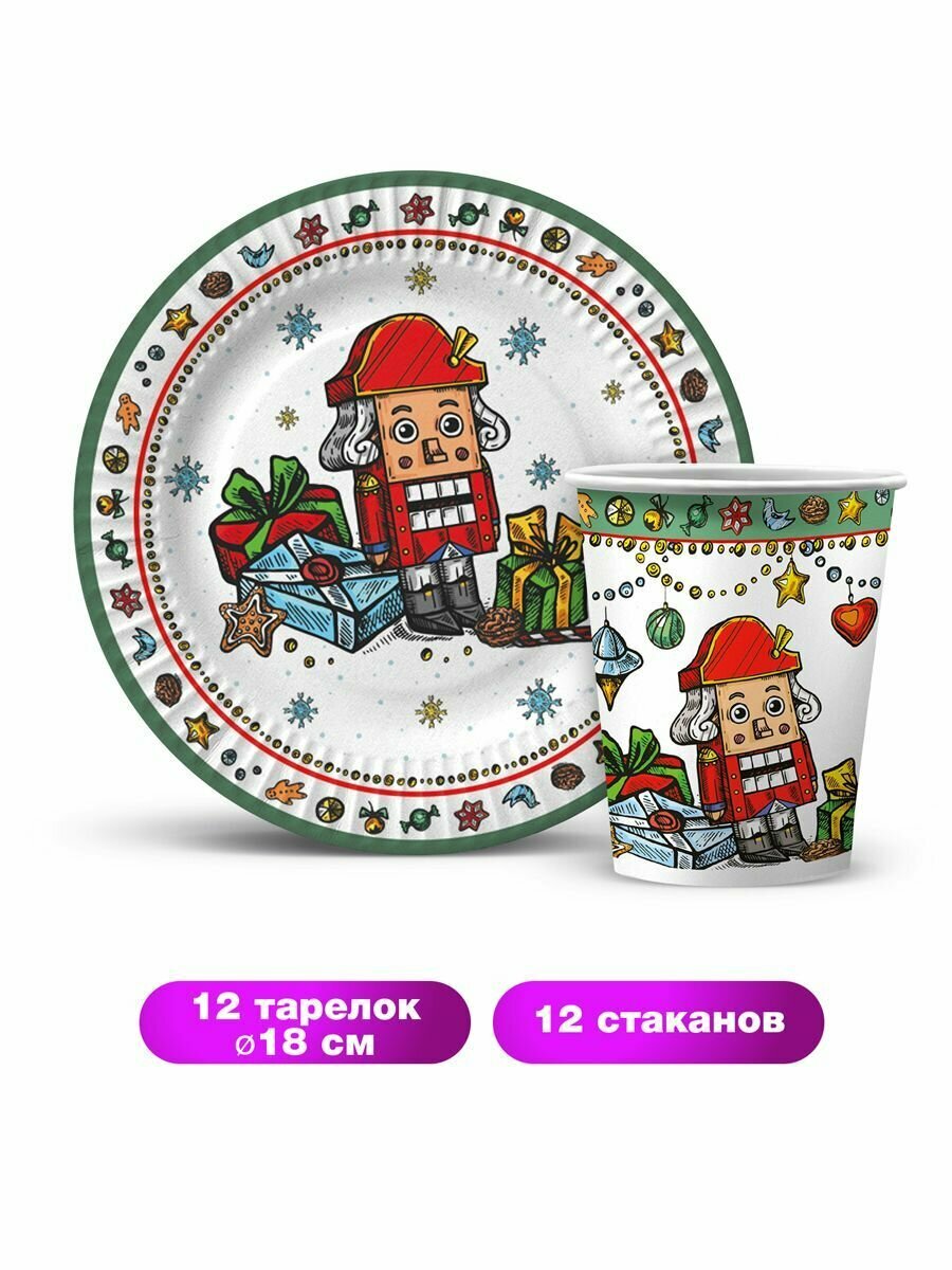 Набор бумажной одноразовой посуды для праздника ND Play / Щелкунчик-1 (стакан, тарелка 18 см, по 12 шт.) информация: