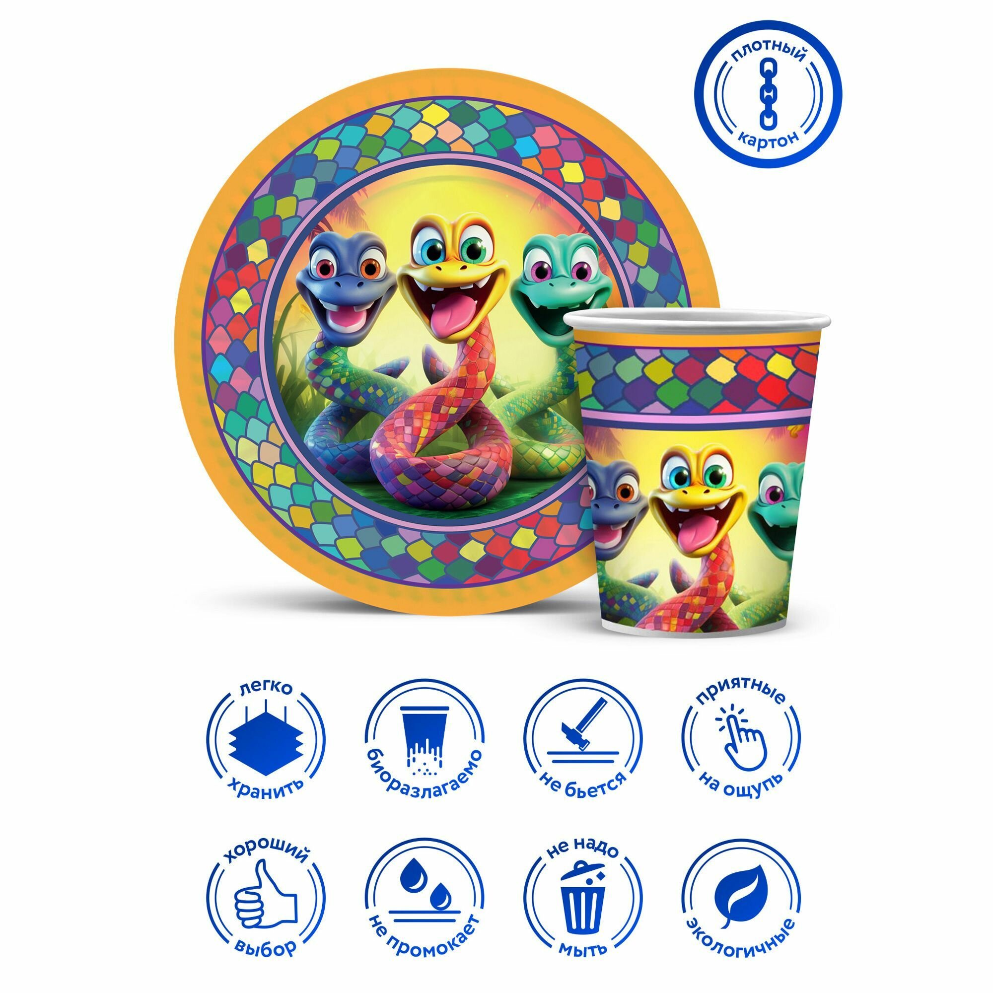 Набор бумажной одноразовой посуды для праздника ND Play / Символ года. Три змеи (стакан, тарелка 18 см, по 12 шт.) информация:
