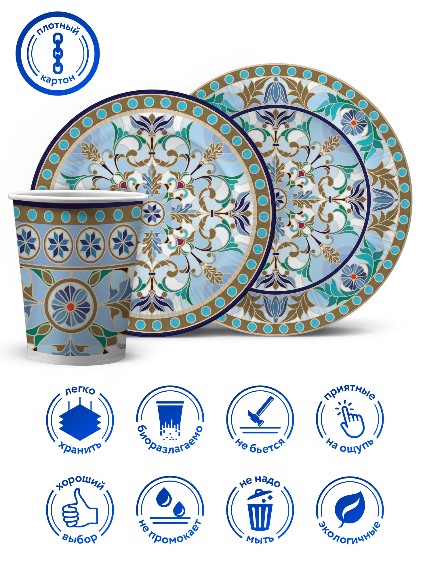 10 цен на Набор для праздника Царская-калейдоскоп голубая (тарелка бол, тарелка мал, стакан, по 12 шт.)