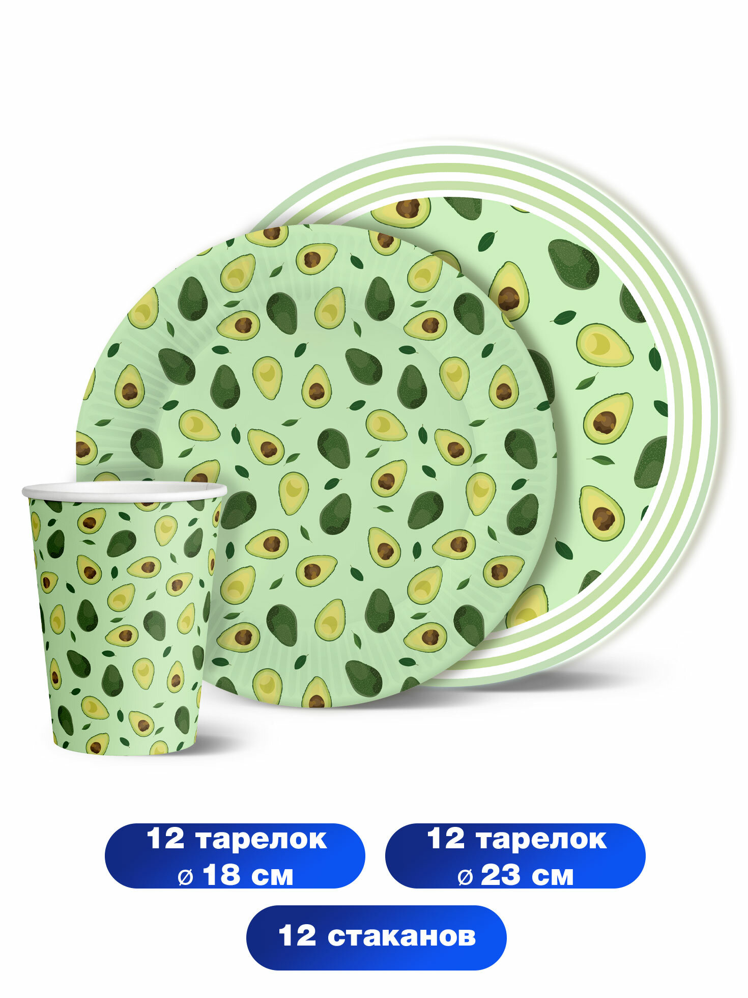 Набор одноразовой бумажной посуды для праздника ND Play / Авокадо-2 (тарелка мал, тарелка бол, стакан по 12 шт.) информация:
