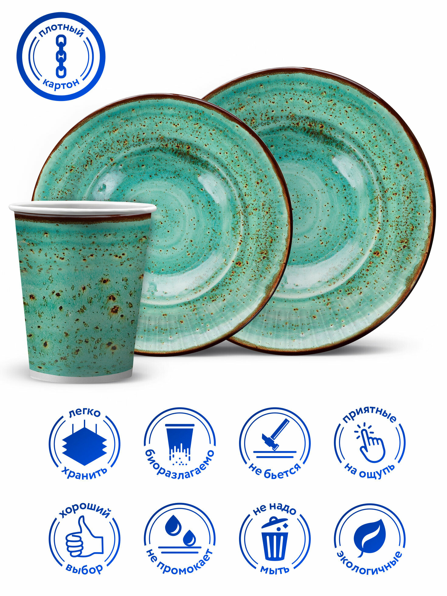 Набор бумажной одноразовой посуды для праздника Гранат на бирюзовом (тарелка мал, тарелка бол, стакан, по 12 шт.) ND Play 549 ₽