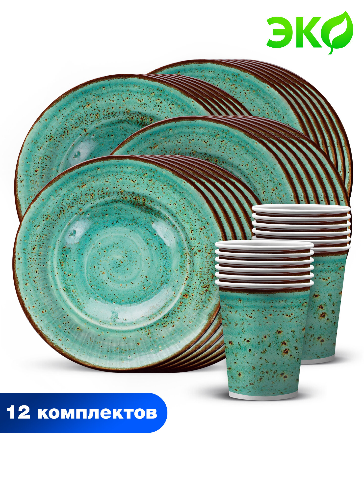 10 цен на Набор для праздника Керамика (тарелка бол, тарелка мал, стакан, по 12 шт.)