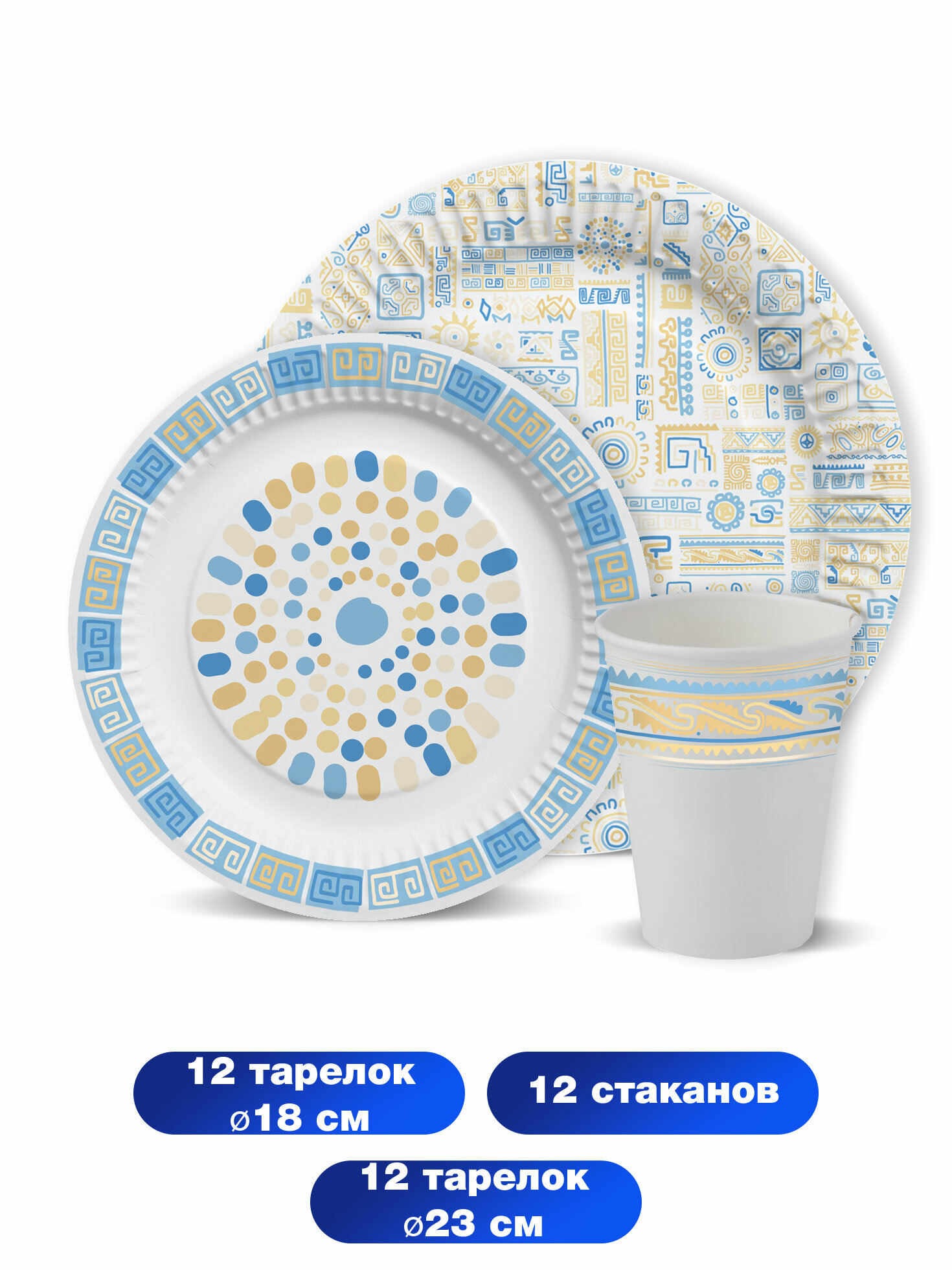 Набор для праздника Царская-калейдоскоп голубая (тарелка бол, тарелка мал, стакан, по 12 шт.) 739 ₽