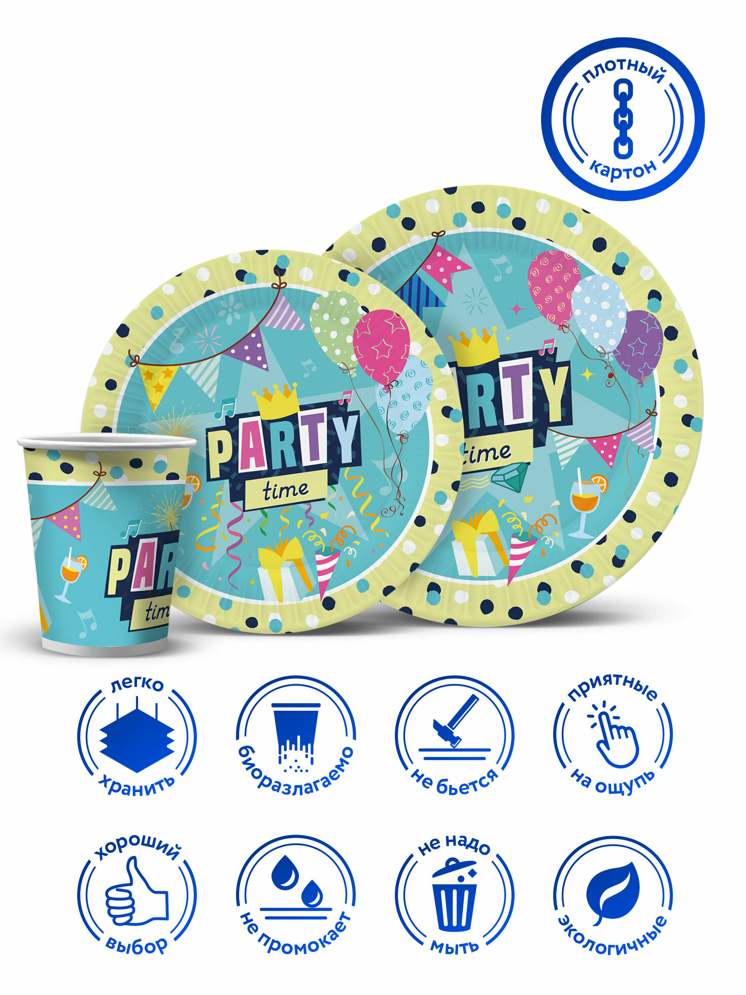 Отзывы на Набор бумажной одноразовой посуды для праздника Вечеринка (тарелка мал, тарелка бол, стакан, по 12 шт.) ND Play