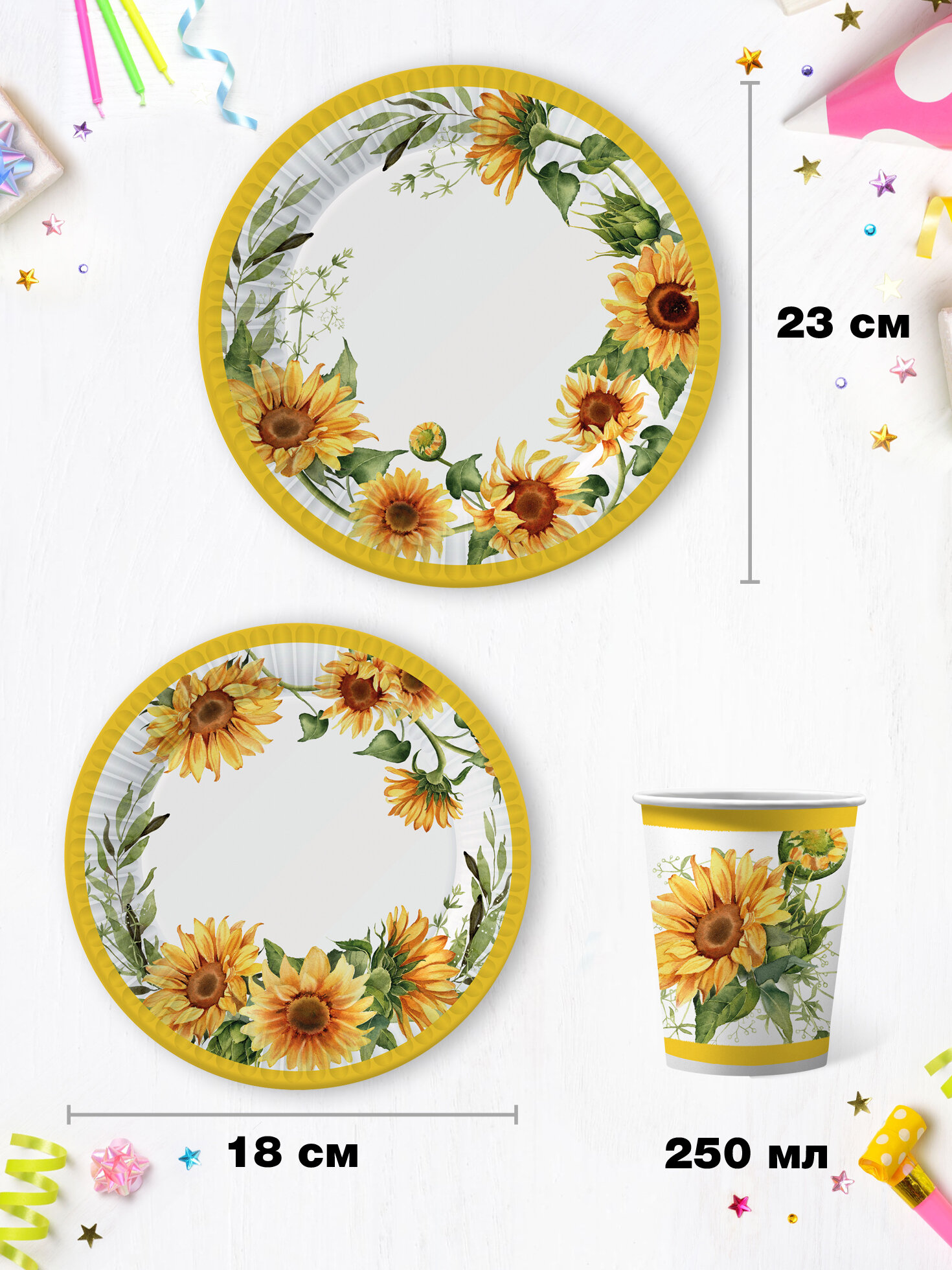 10 цен на Набор для праздника Подсолнухи (тарелка бол, тарелка мал, стакан, по 12 шт.)