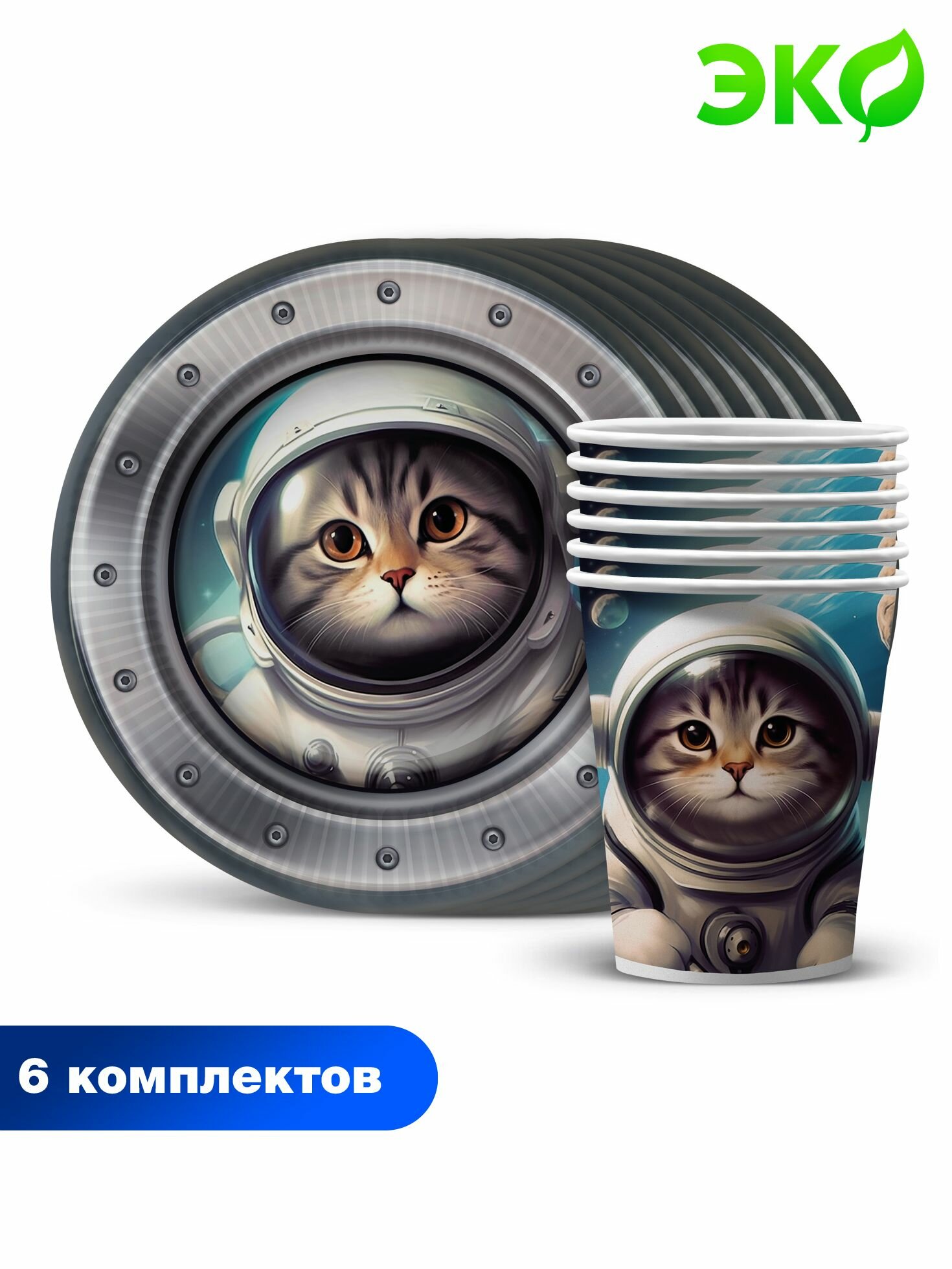 Отзывы на Набор одноразовой бумажной посуды для праздника ND Play / Кот-космонавт (тарелка 18 см, стакан, по 6 шт.)