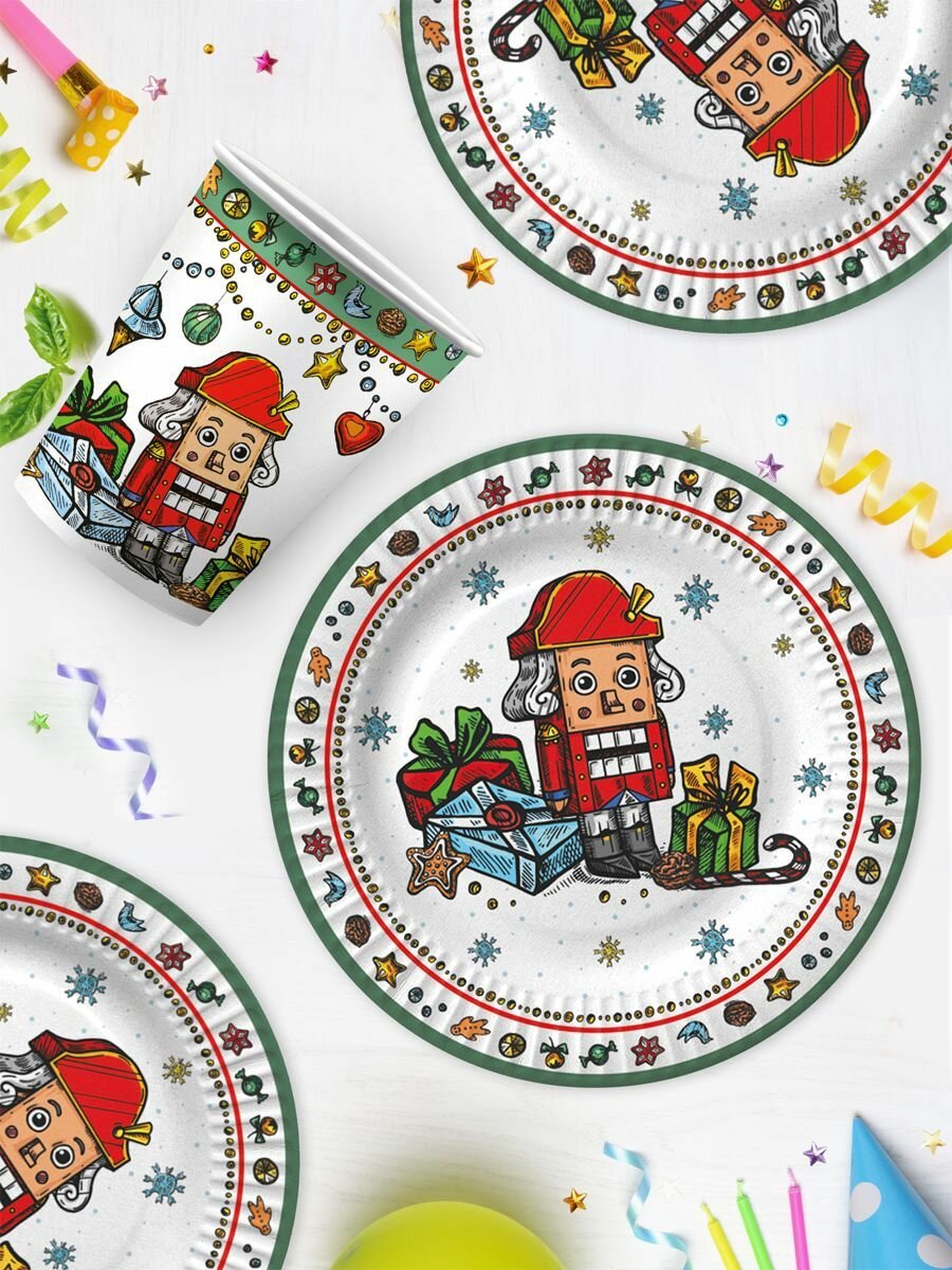 Набор бумажной одноразовой посуды для праздника ND Play / Щелкунчик-1 (стакан, тарелка 18 см, по 6 шт.) информация: