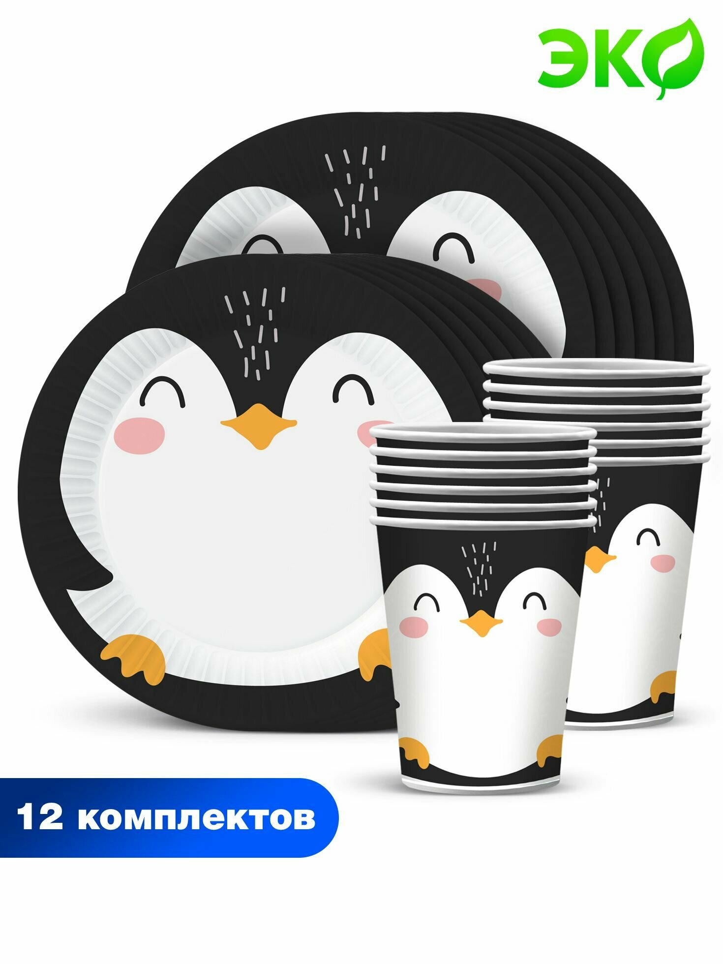 10 цен на Набор одноразовой бумажной посуды для праздника ND Play / Хэппи Зоо / Животные. Пингвин (тарелка 18 см, стакан, по 12 шт.)