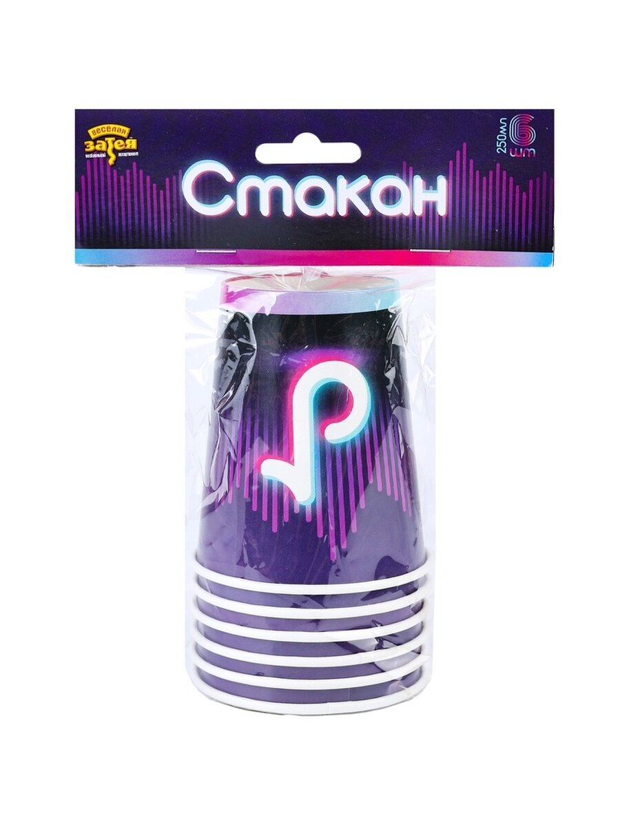 Набор бумажных одноразовых стаканчиков Тик-ток - 6 шт, 250 мл информация: