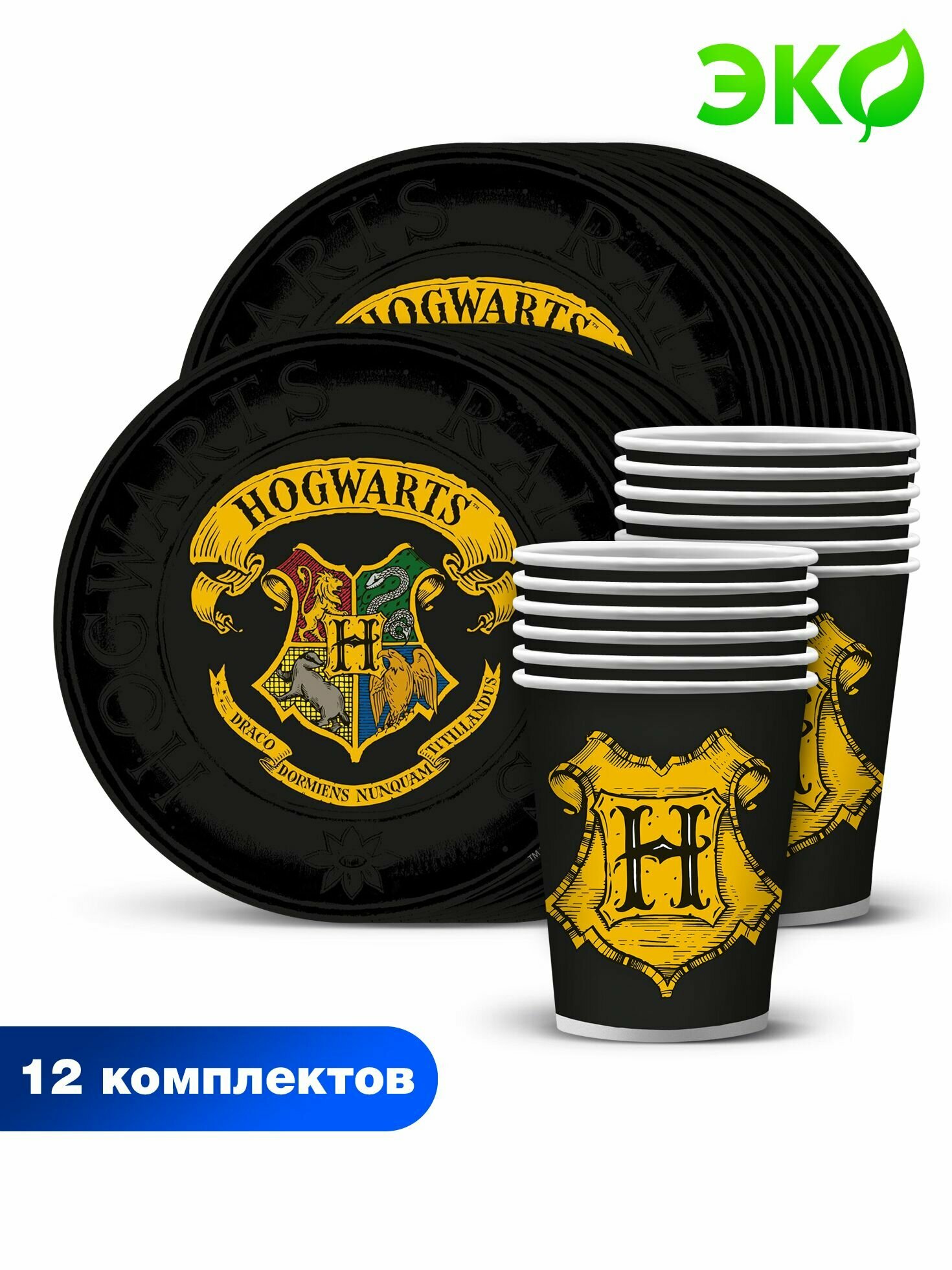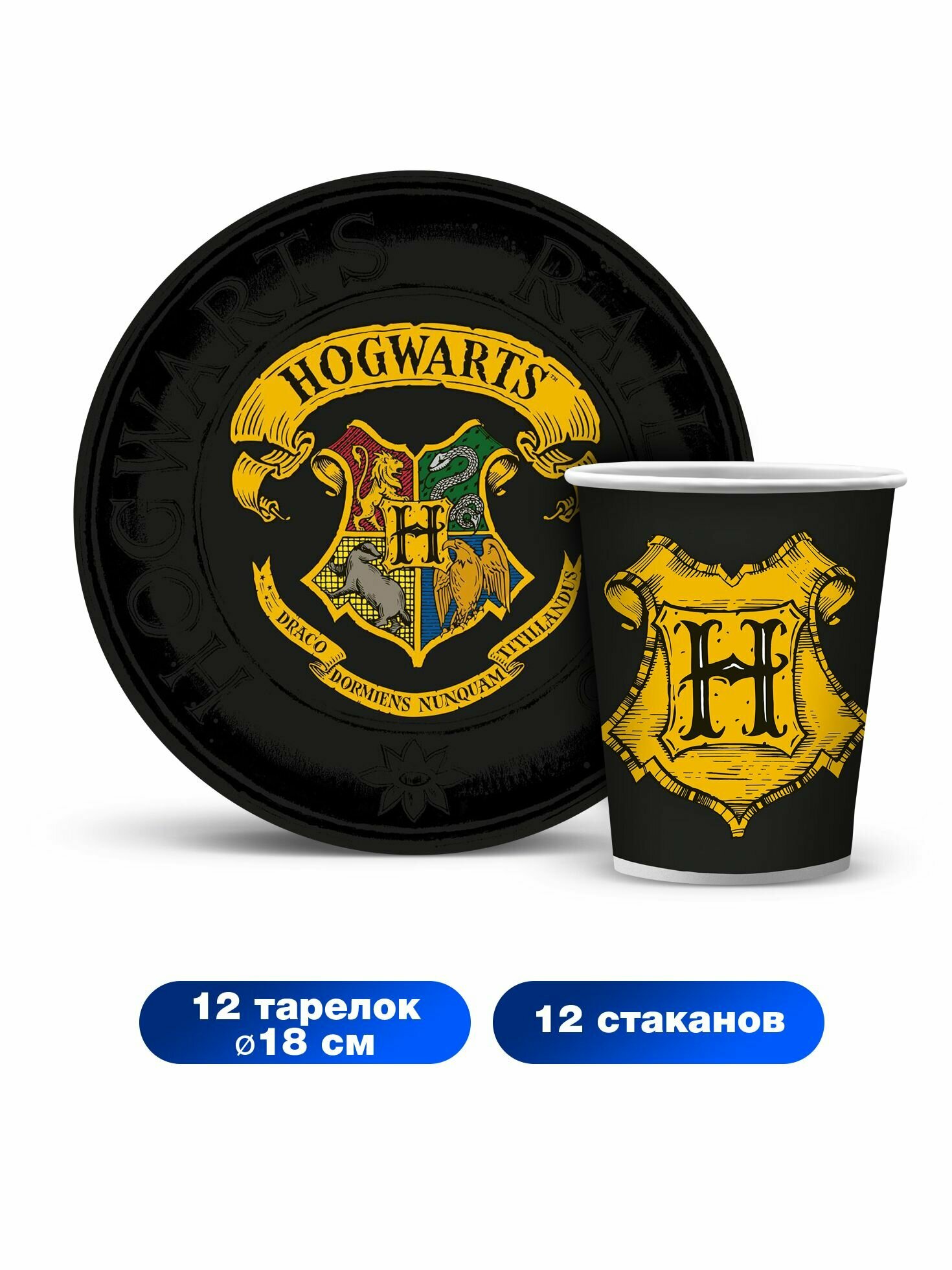 Набор одноразовой бумажной посуды для праздника ND Play / Harry Potter Гербы Хогвартса (тарелка 18 см, стакан, по 12 шт.) информация: