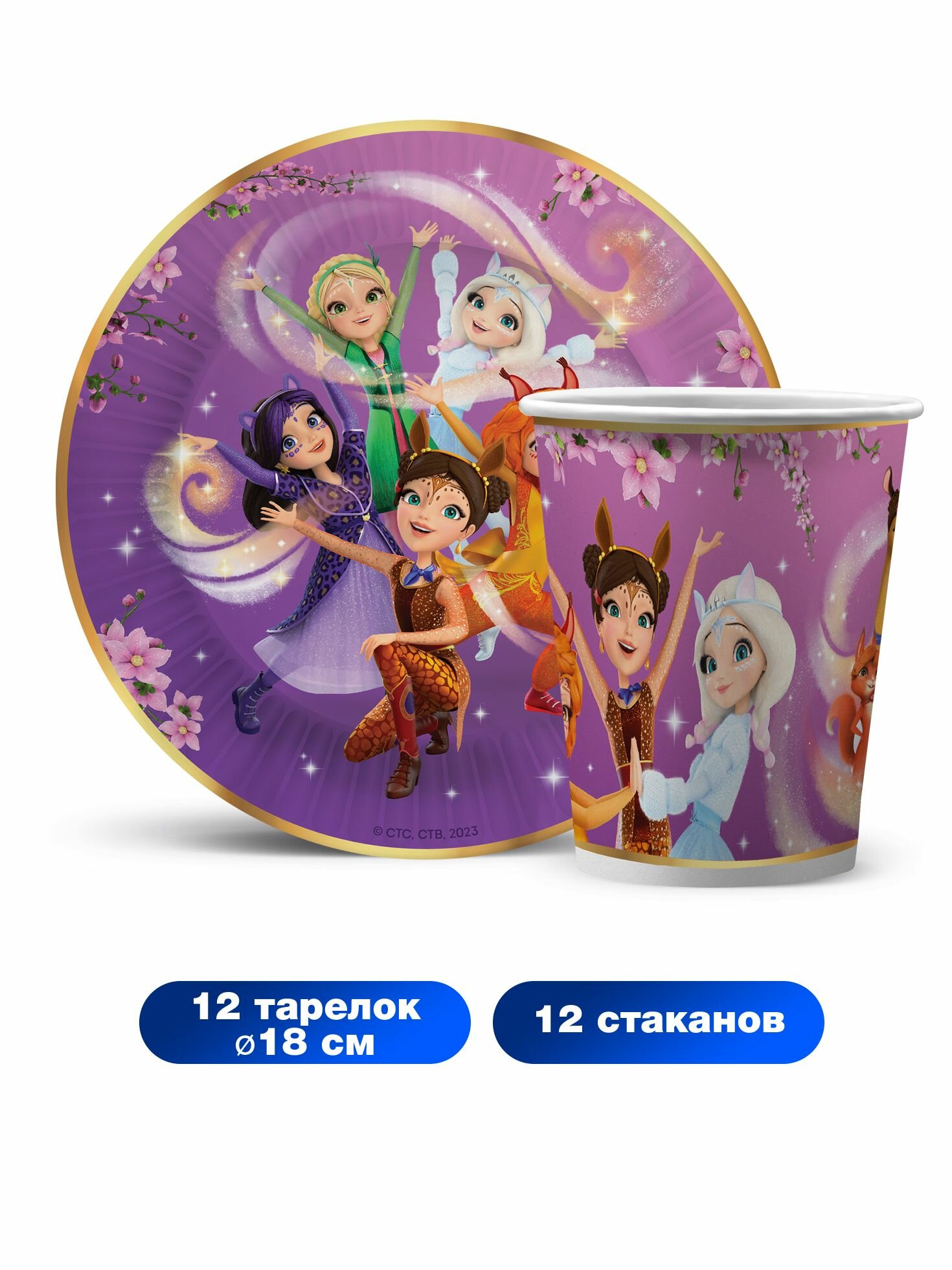 Набор одноразовой бумажной посуды для праздника ND Play / Царевны (тарелка 18 см. , стакан, по 12 шт.) информация: