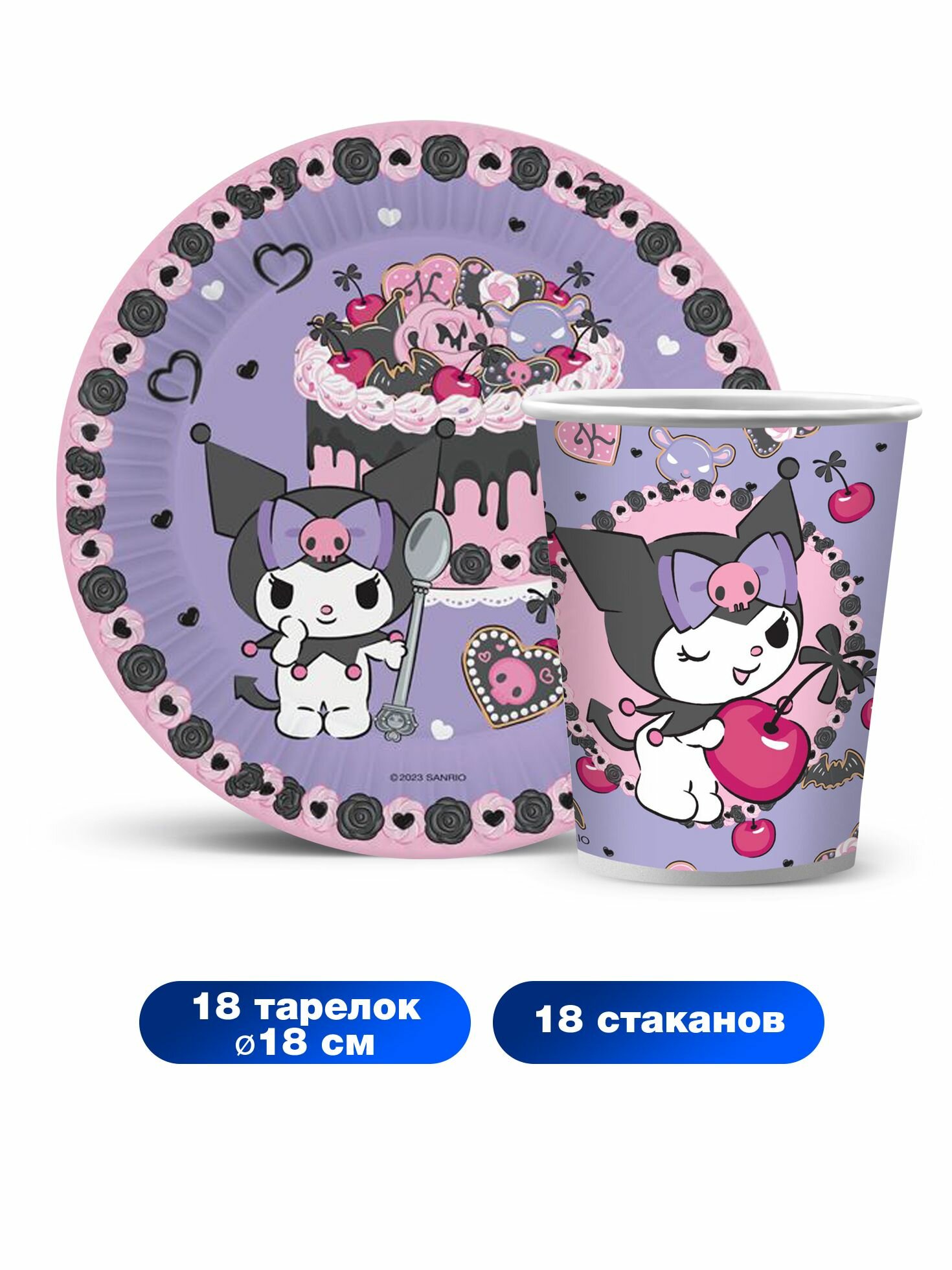 Набор одноразовой бумажной посуды для праздника ND Play / Kuromi (тарелка 18 см. , стакан, по 18 шт.) информация: