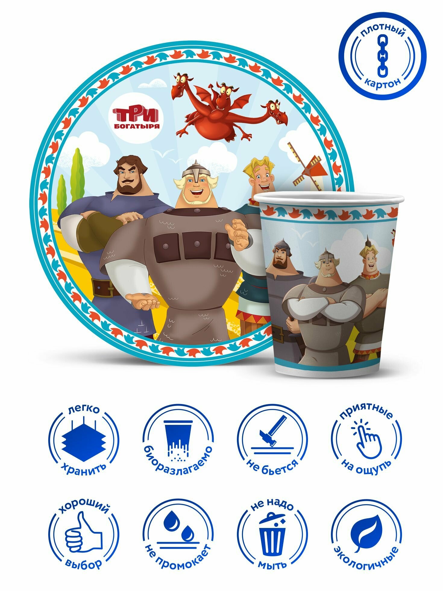 Набор одноразовой бумажной посуды для праздника ND Play / Три Богатыря (тарелка 18 см. , стакан, по 18 шт.) информация: