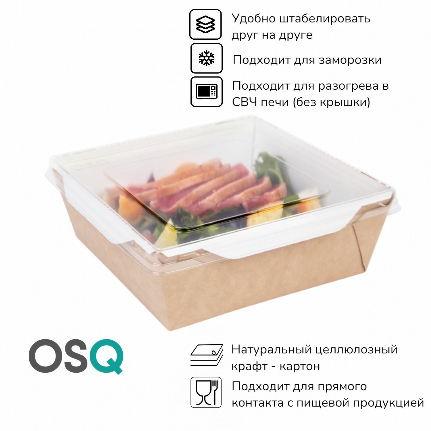 Одноразовые контейнеры с крышкой OSQ крафт, объем 1 200 мл, 14,5х14,5х6,3 см, 10 шт. информация:
