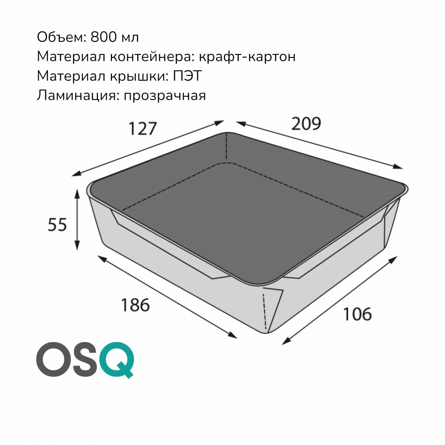 Одноразовые контейнеры с крышкой OSQ крафт, объем 800 мл, 18,6х10,6х5,5 см, 10 шт. информация: