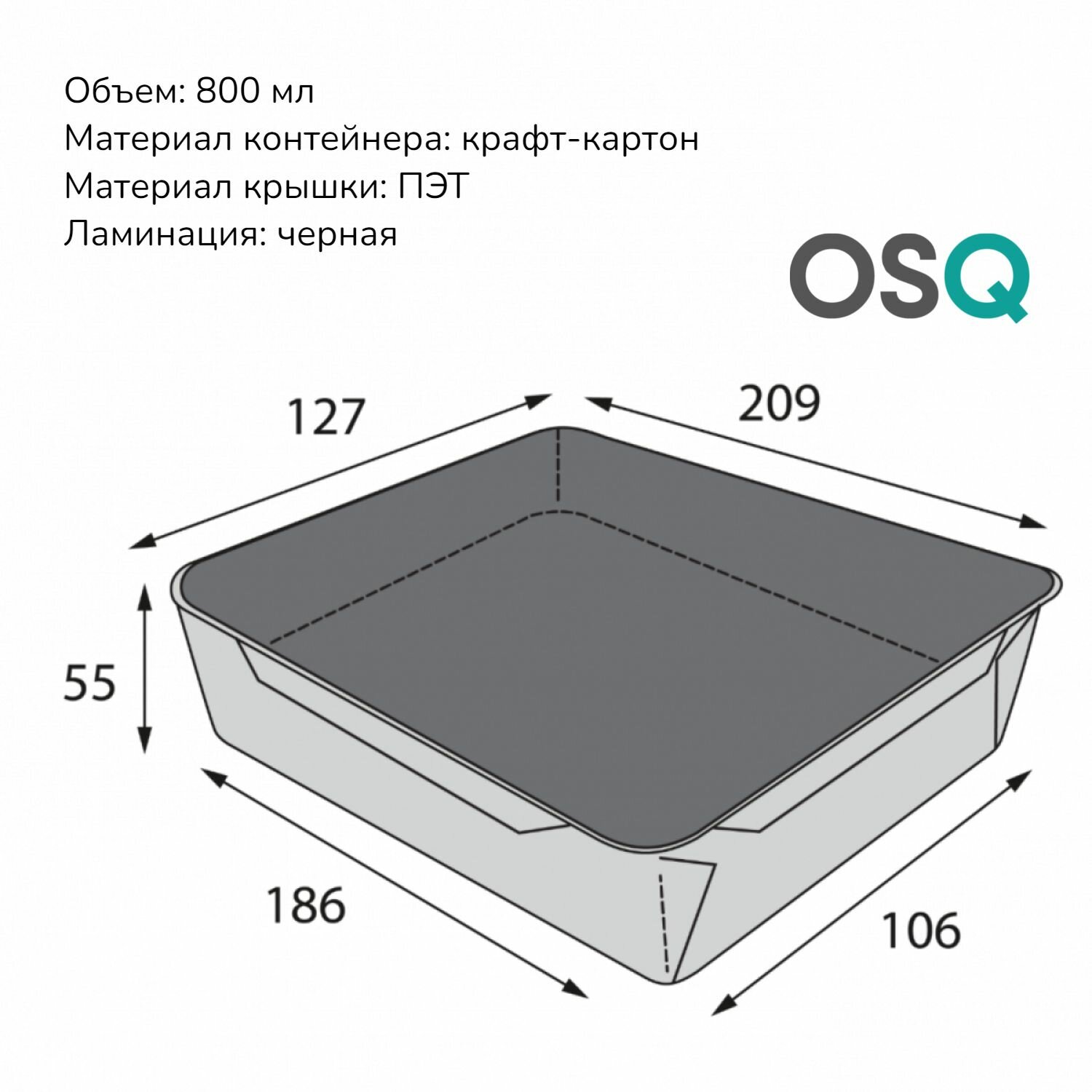 Одноразовые картонные контейнеры с крышкой OSQ, объем 800 мл, 18,6х10,6х5,5 см, черные, 10 шт. информация: