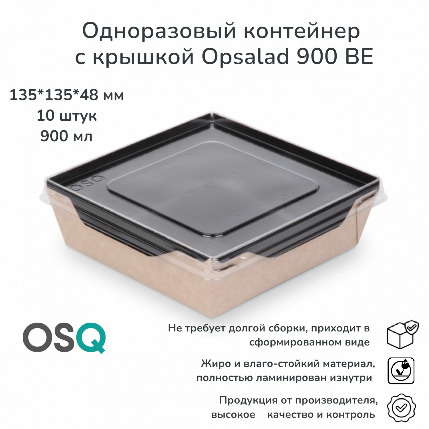 Одноразовые контейнеры с крышкой OSQ крафт, объем 900 мл, 13,5х13,5х4,8 см, 10 шт. 600 ₽